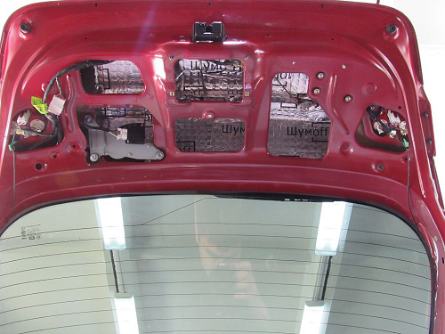 Обшивку пятой двери оклеиваем Flex А15, для устранения ненужных скрипов и бряков.