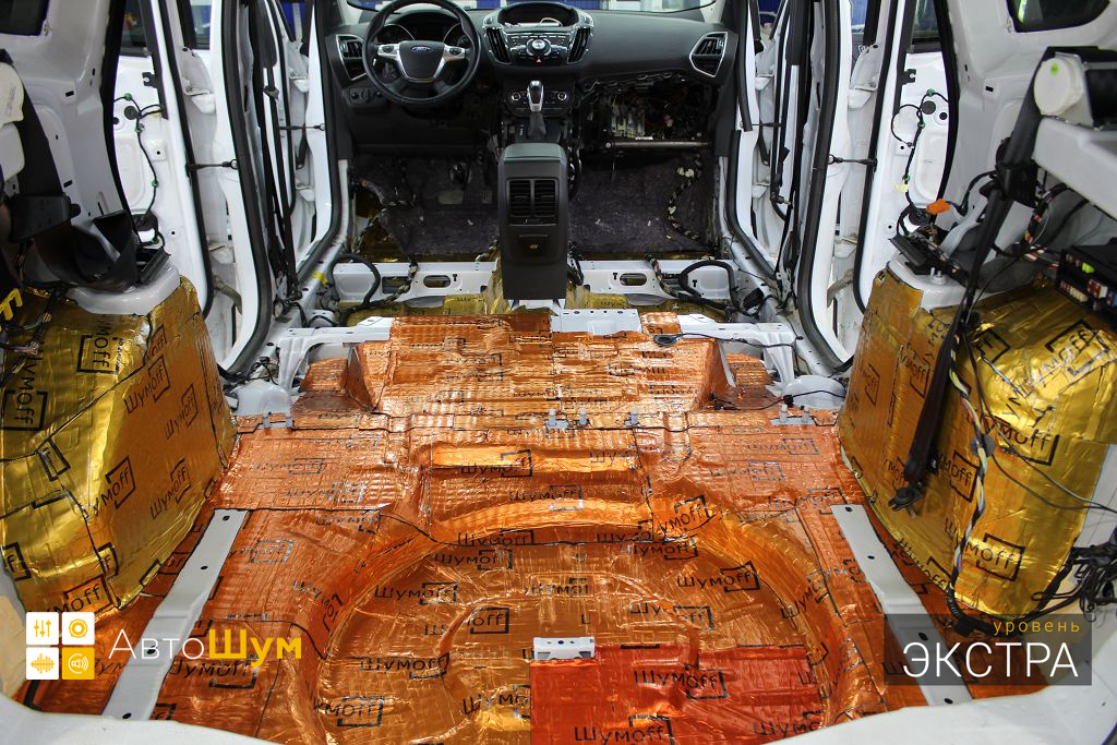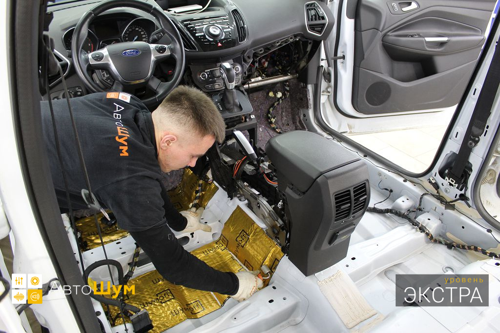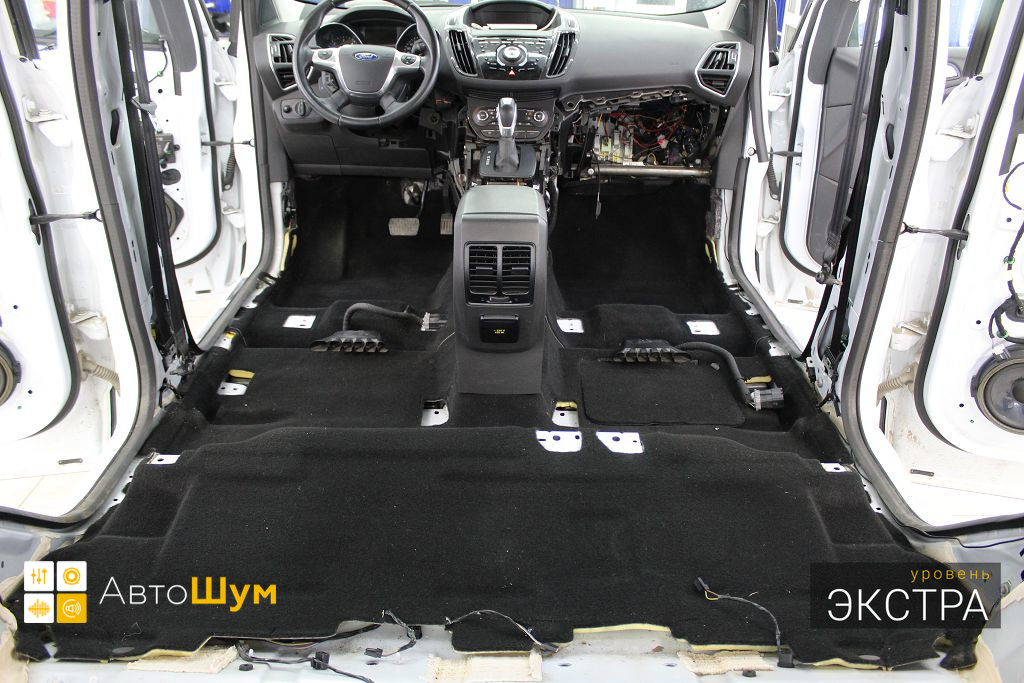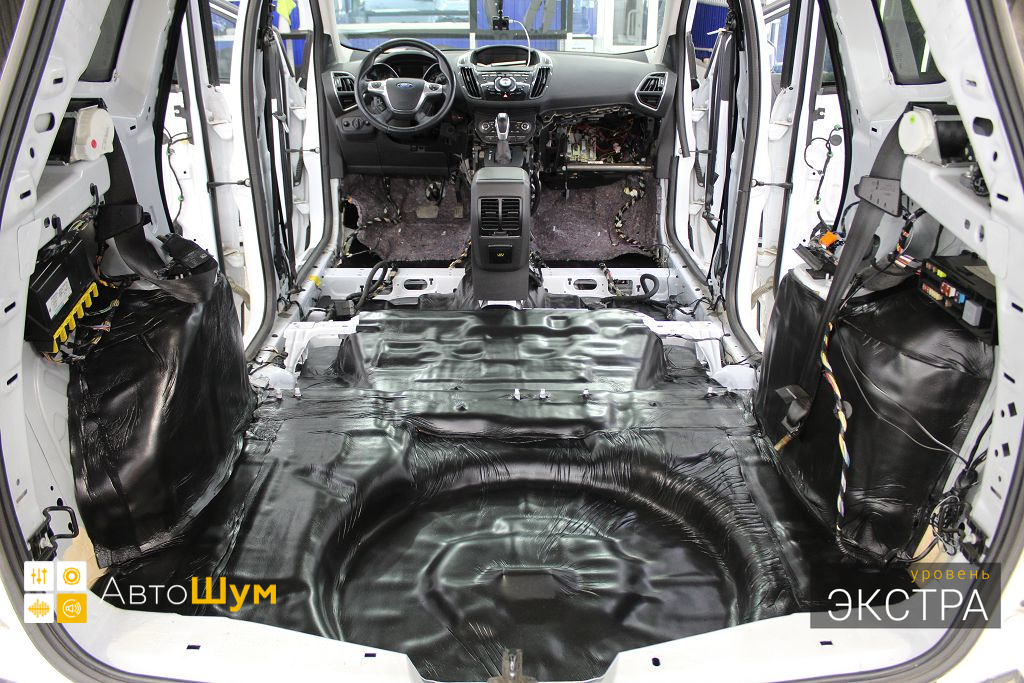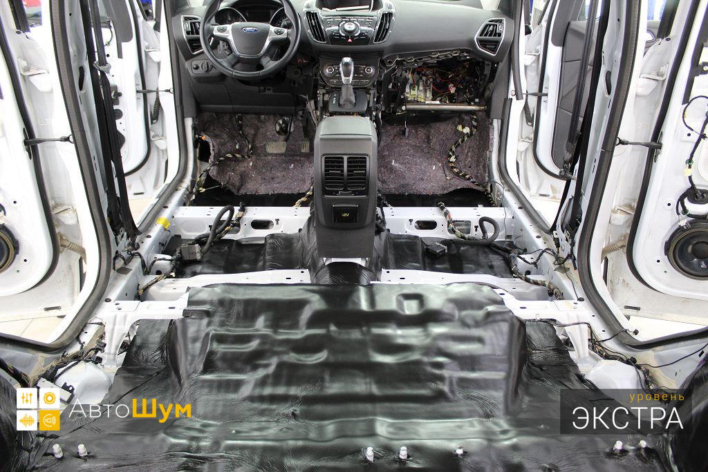 Ford Kuga — это полноприводный кроссовер среднего класса, хорошо оснащенный технологически и имеющий высшую оценку по безопасности. Автомобили Ford из года в год набирают все большую популярность в нашей стране, поскольку имеют ряд весомых преимуществ перед конкурентами, однако низкий уровень шумоизоляции салона является существенным недостатком. Шум и гул от дорожного покрытия влияет на уровень комфорта как водителя, так и пассажиров. Исправить эти недочеты можно, сделав дополнительную шумоизоляцию салона Форд Куга.