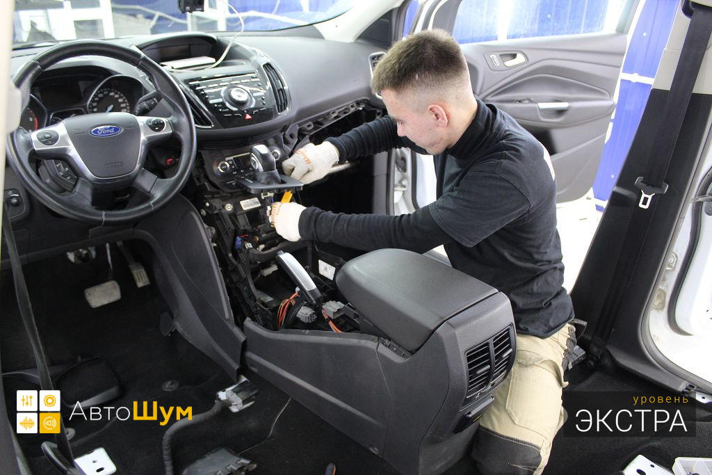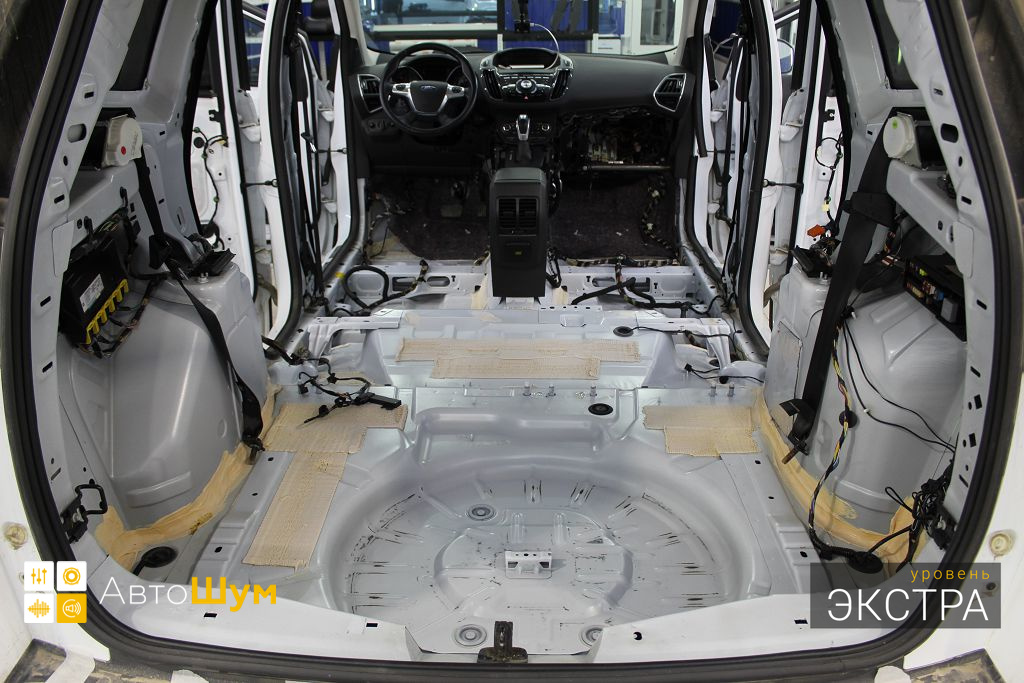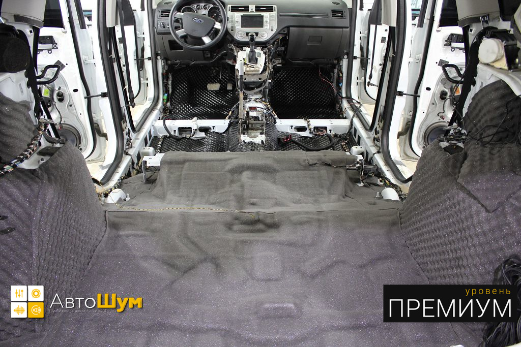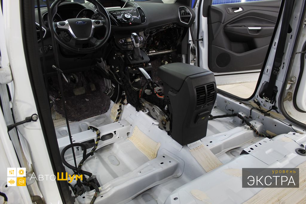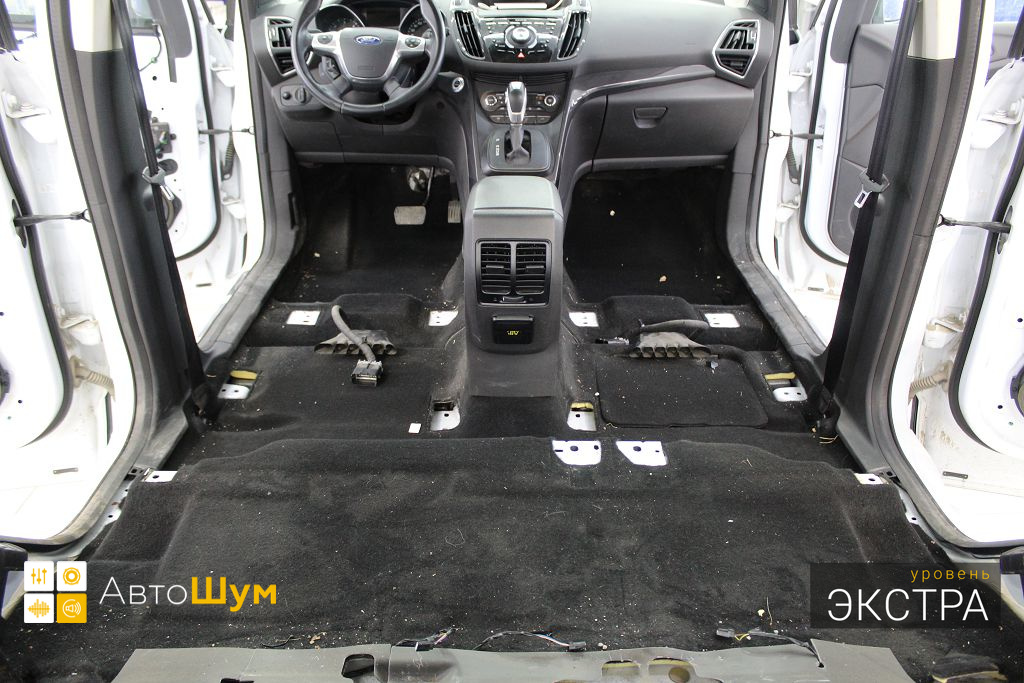 Ford Kuga — это полноприводный кроссовер среднего класса, хорошо оснащенный технологически и имеющий высшую оценку по безопасности. Автомобили Ford из года в год набирают все большую популярность в нашей стране, поскольку имеют ряд весомых преимуществ перед конкурентами, однако низкий уровень шумоизоляции салона является существенным недостатком. Шум и гул от дорожного покрытия влияет на уровень комфорта как водителя, так и пассажиров. Исправить эти недочеты можно, сделав дополнительную шумоизоляцию салона Форд Куга.