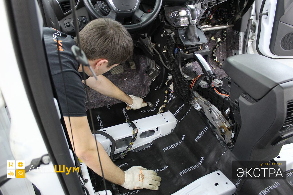 Перед началом шумоизоляции пола на Ford Kuga (Форд Куга) необходимо проверить качество адгезии заводской виброизоляции к кузову. Она должна хорошо держаться, в противном, случае её необходимо демонтировать.