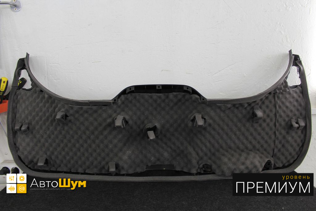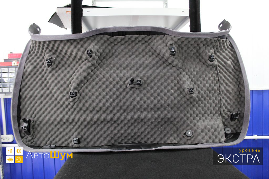 Для виброизоляции крыши багажника используем материал Шумофф L2, чтобы свести увеличение веса к минимуму. После чего переходим к обшивке.