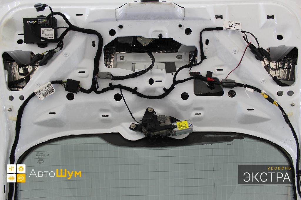 Обшивку пятой двери оклеиваем Flex А15, для устранения ненужных скрипов и бряков.