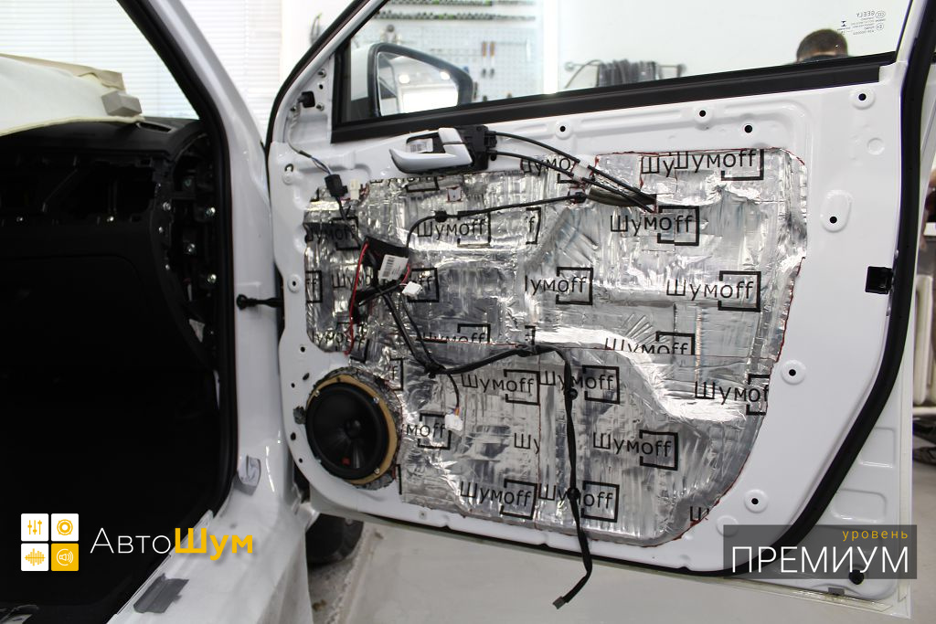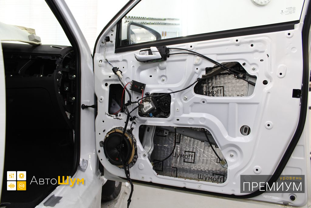 Шумоизоляция дверей Джили Эмгранд Помимо еще одного барьера для внешнего шума данный слой позволит раскрыть потенциал акустической системы, установленной в дверях.
