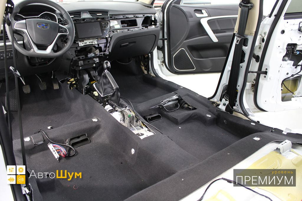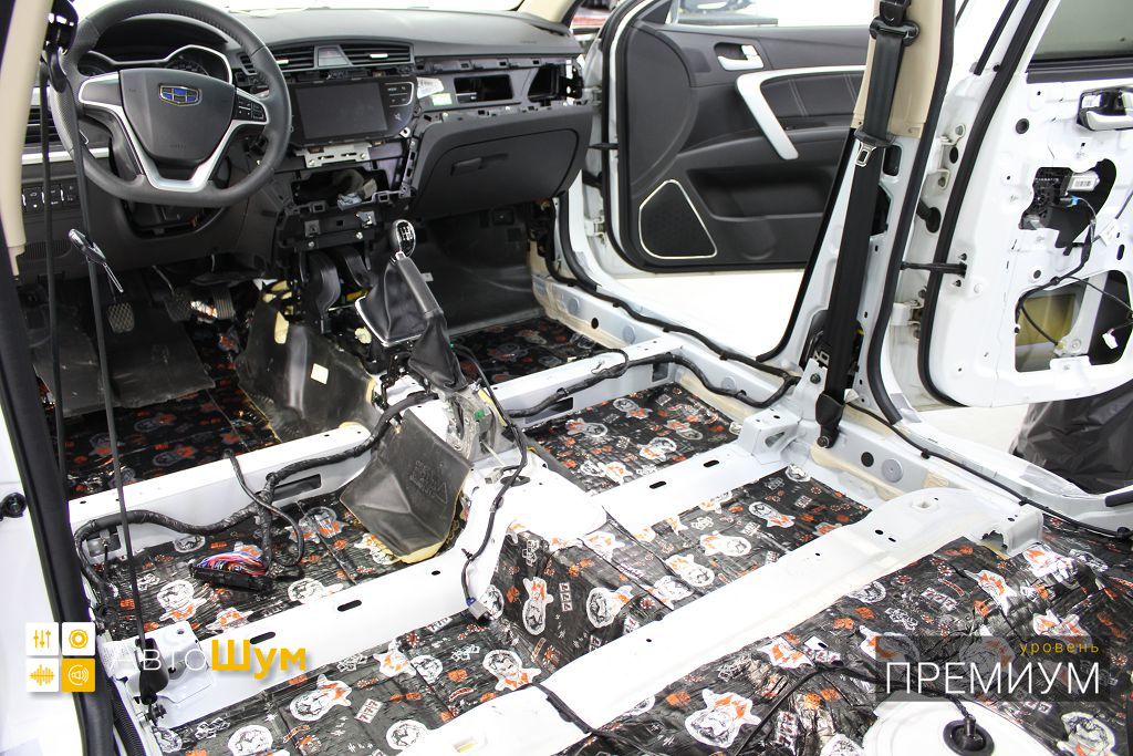 Клеим шумоизоляцию в багажник Джили Эмгранд