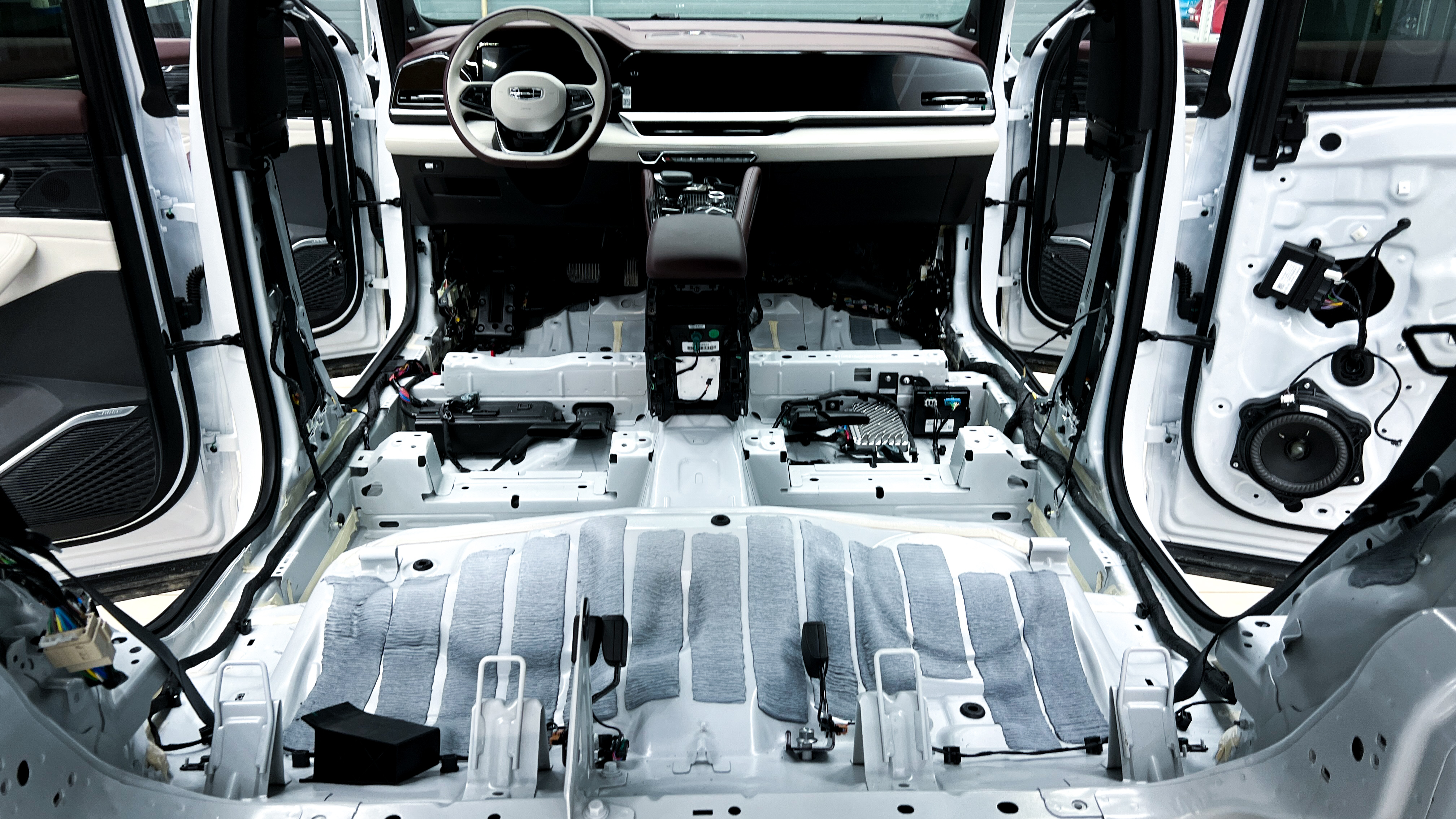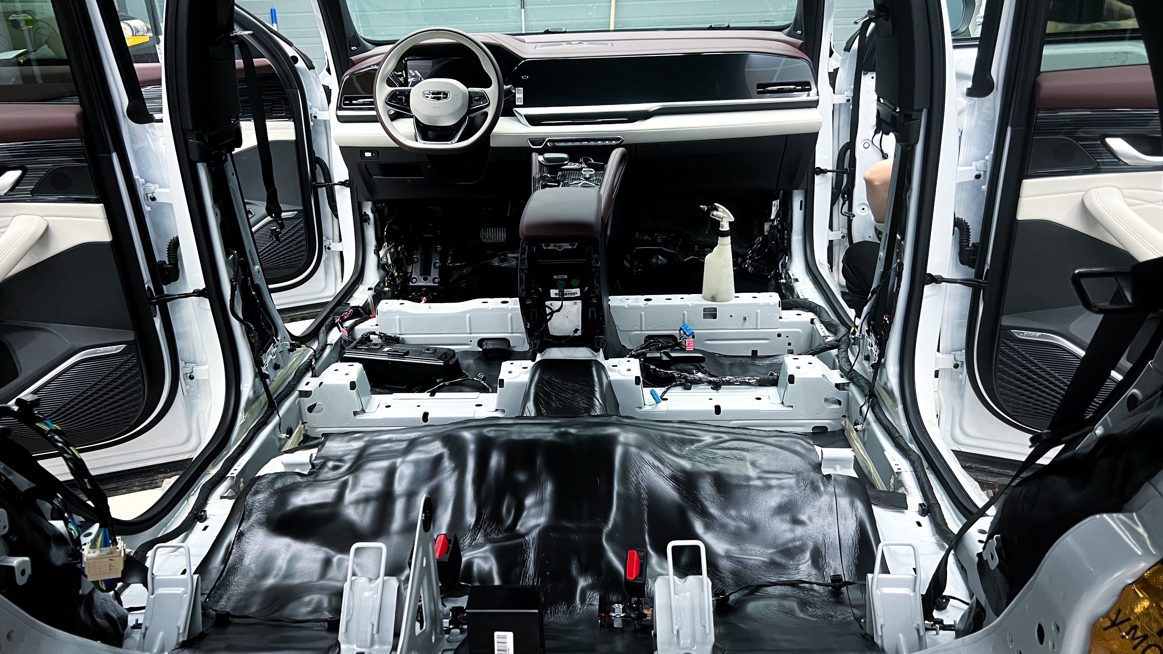 Штатная шумоизоляция Джили Монжаро Перед началом шумоизоляции пола на Geely Monjaro (Джили Монжаро) необходимо проверить качество адгезии заводской виброизоляции к кузову. Она должна хорошо держаться, в противном, случае её необходимо демонтировать.