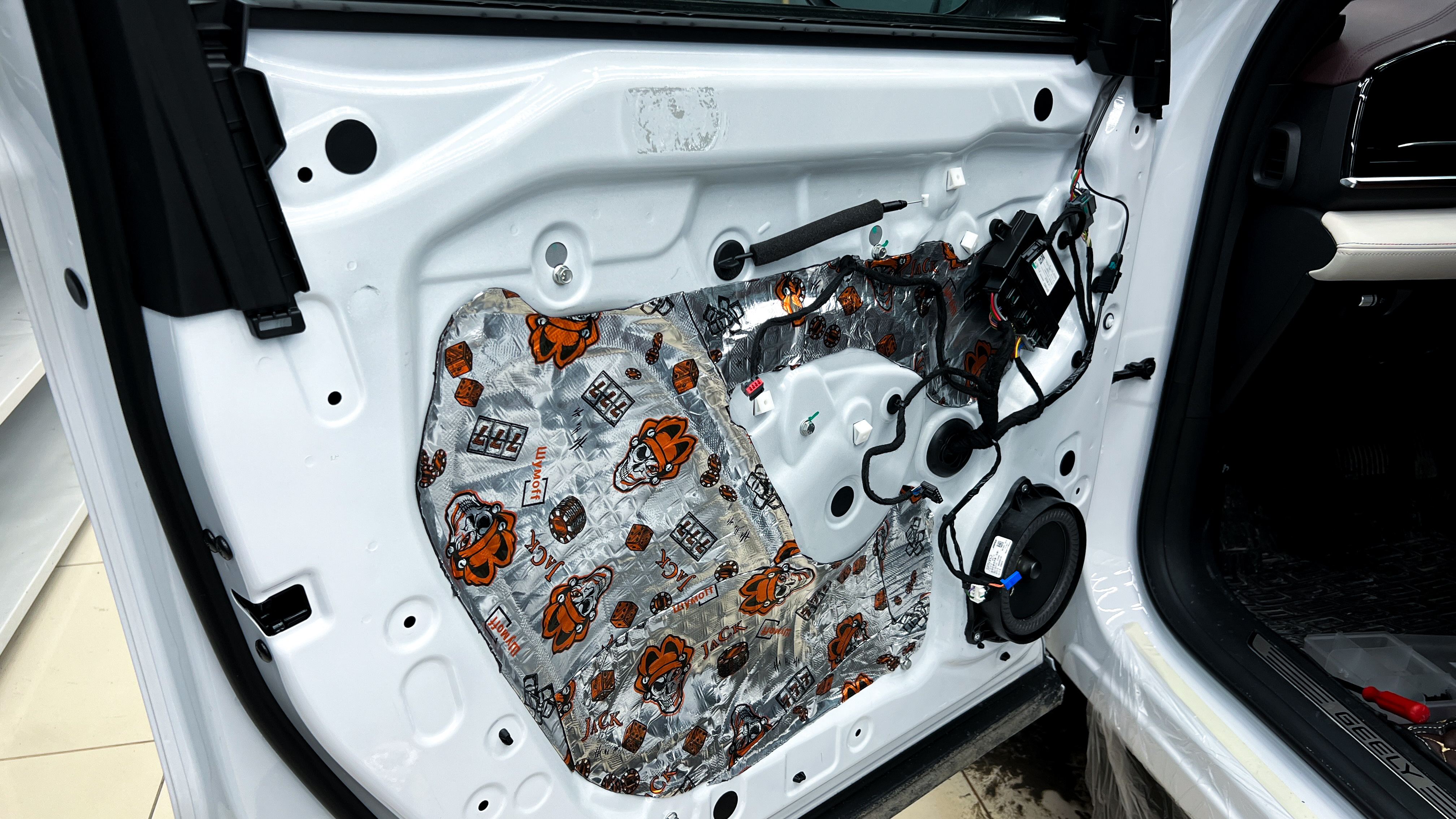 Шумоизоляция двери Джили Монжаро Вторым слоем внутрь двери поверх виброизоляции клеим современный шумо и теплоизолятор Шумофф Комфорт 6.