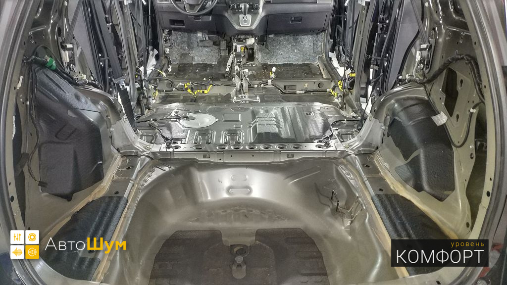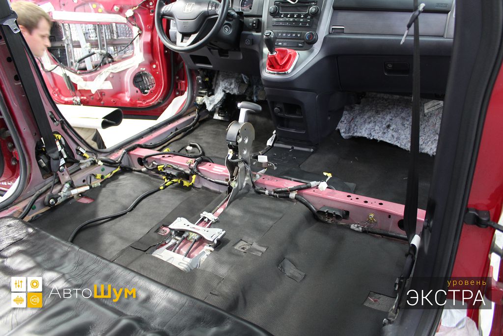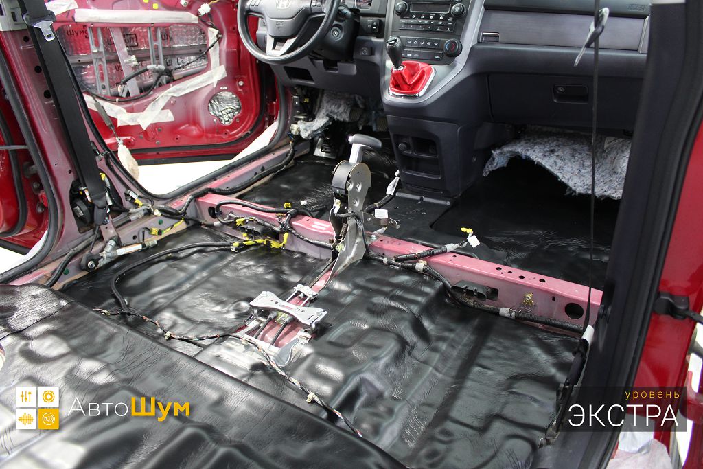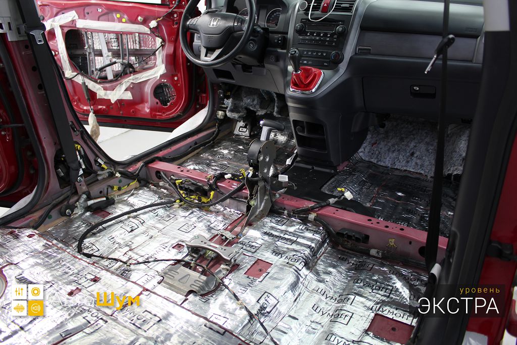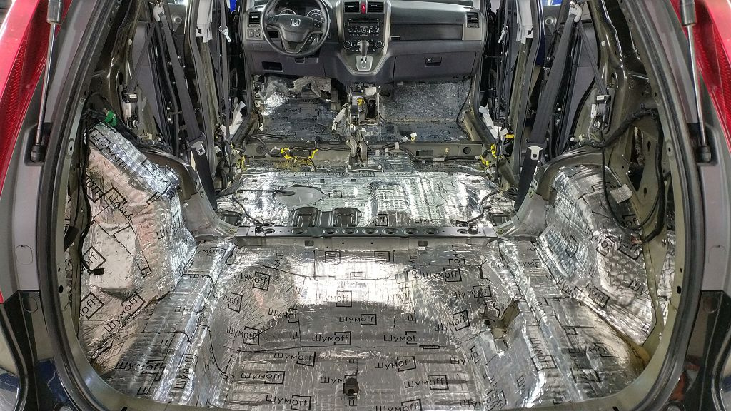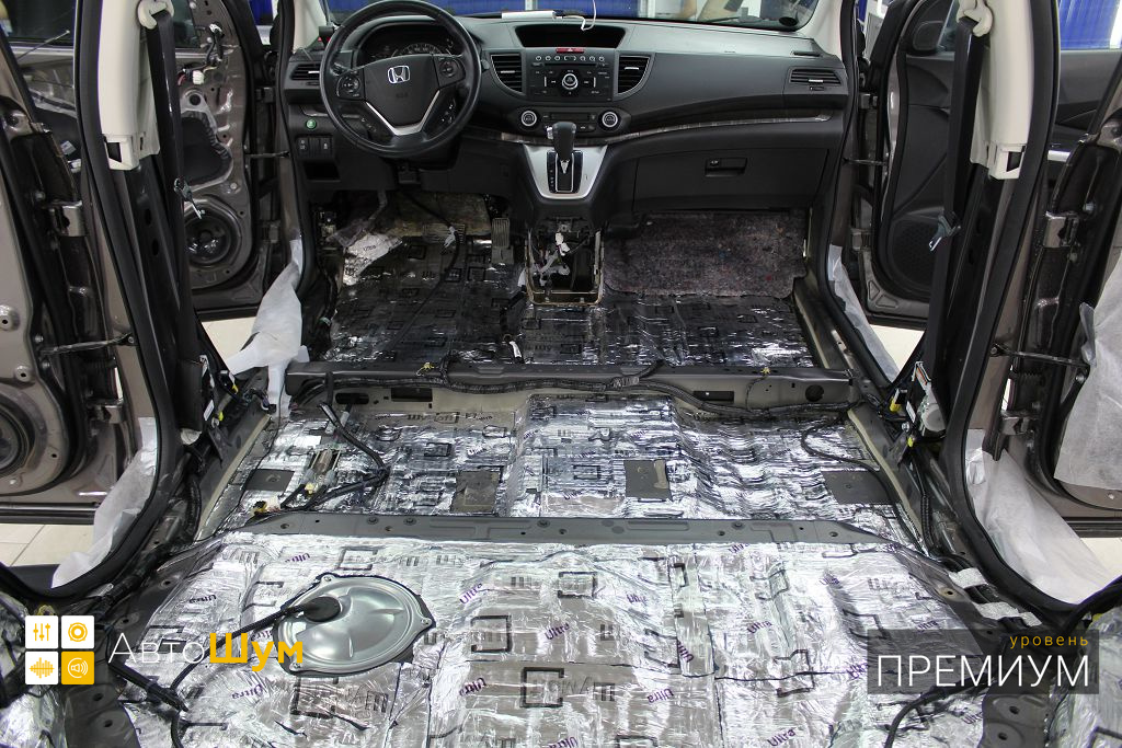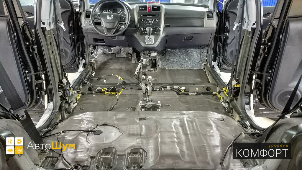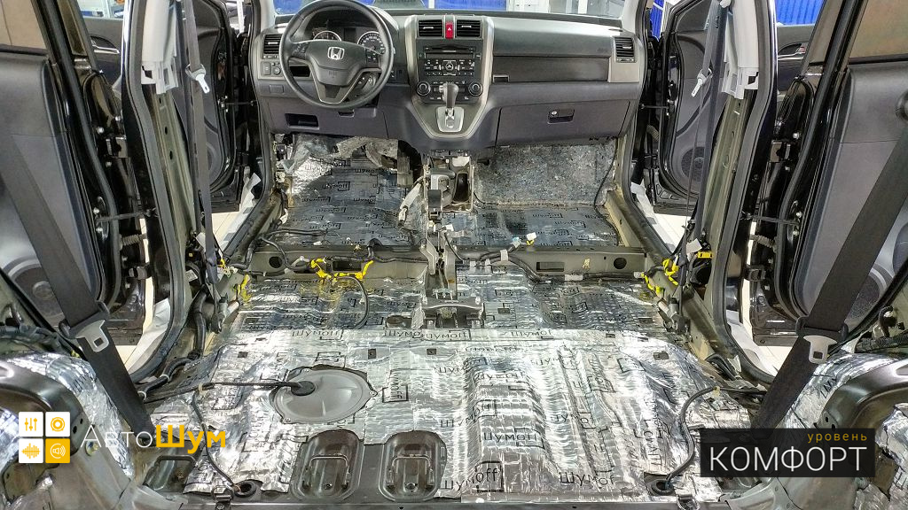 Honda CR-V - один из популярных компактных кроссоверов на российском рынке, просторный салон, хорошей оснащение, а так же японская надежность - все это можно отнести к несомненным плюсам. Однако как и все японские автомобили он унаследовал плохую штатную шумоизоляцию, а именно шум от колес и дороги, недостаточную теплоизоляцию, а так же появляющиеся скрипы салона - все это это можно исправить если сделать дополнительную шумоизоляцию салона Хонды СР-В.