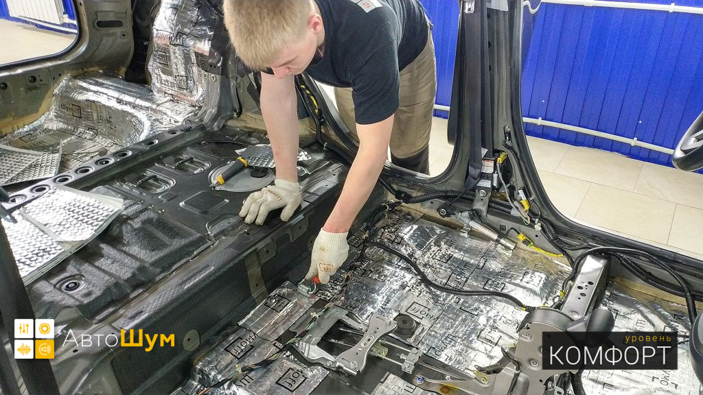 Этот слой позволит нам снизить шум от колес и дорожного покрытия, а также значительно увеличить теплоизоляцию салона.