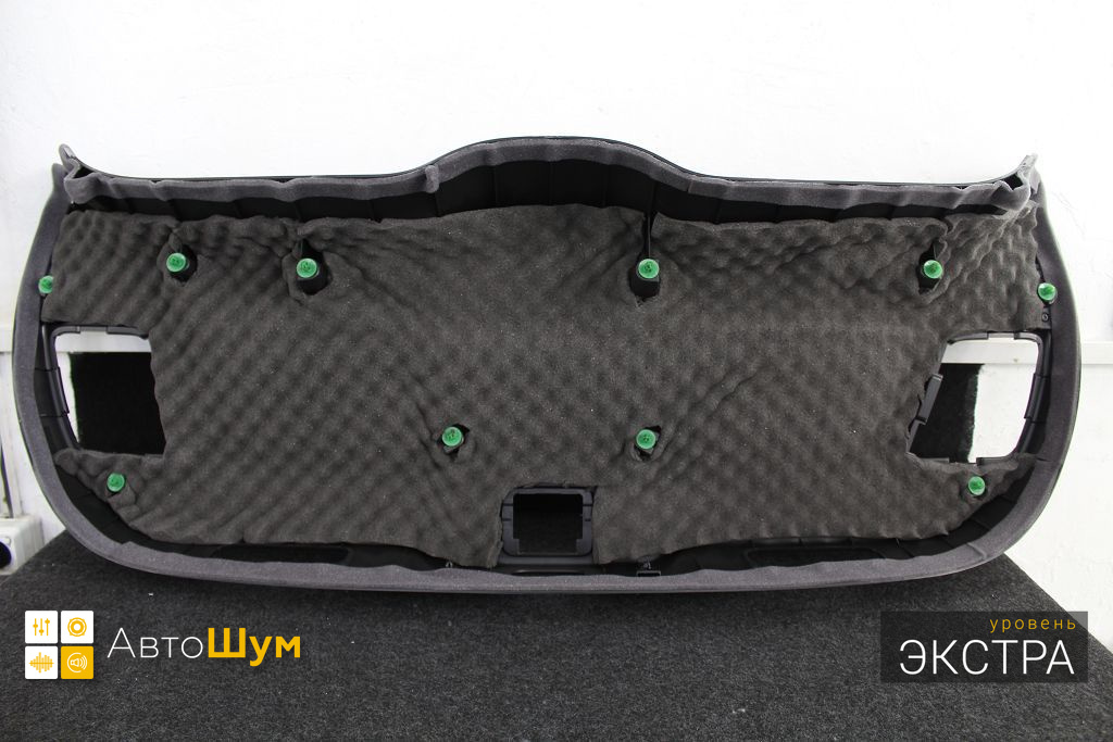 Крышку багажника оклеиваем виброизоляцией Шумофф L2, это позволит свести увеличение ее веса к минимуму, дабы не возникло проблем с открыванием багажника.