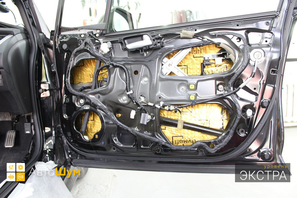 Этот слой помимо еще одного барьера для внешнего шума позволит раскрыть потенциал акустической системы, установленной в дверях.