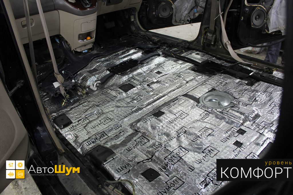 Виброизоляция пола позволит нам значительно снизить вибрацию от дороги, увеличить целостность и сбитость автомобиля, а также уменьшить чувствительность от самой структуры дороги.