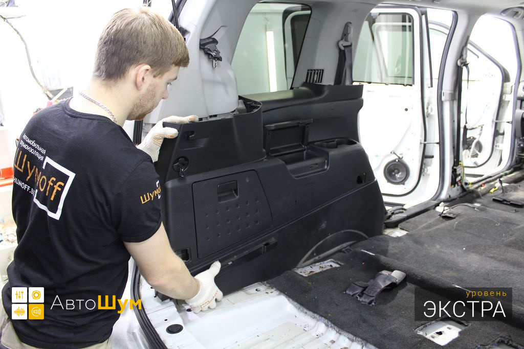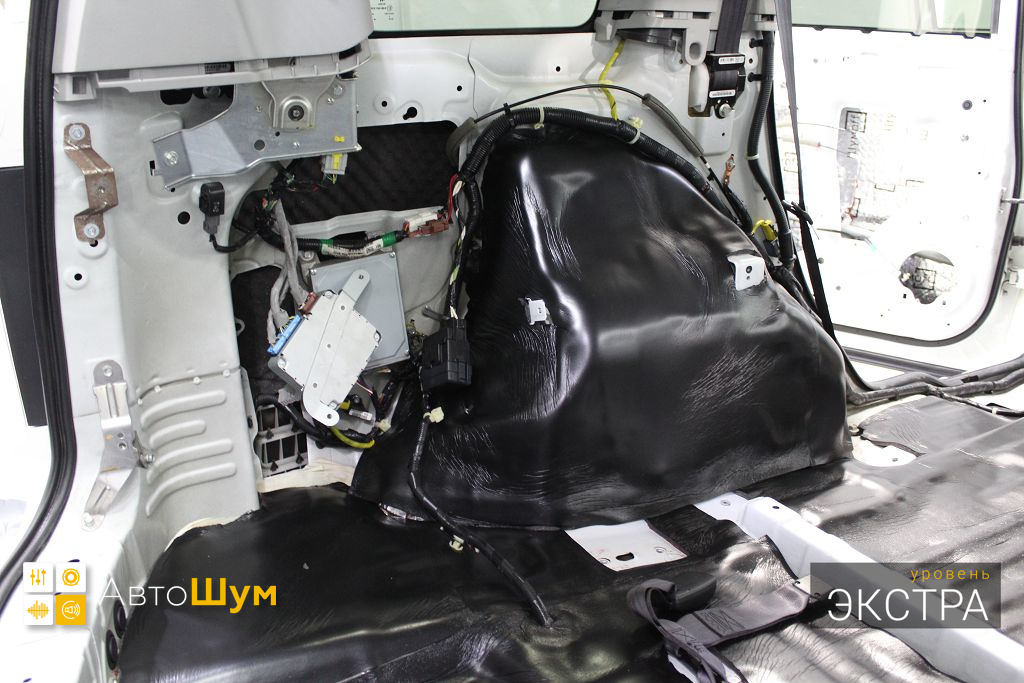 Дно багажника и крылья оклеиваются шумо и теплоизолятором Шумофф П4 4. Арки оклеиваются шумопоглотителем Flex A15.