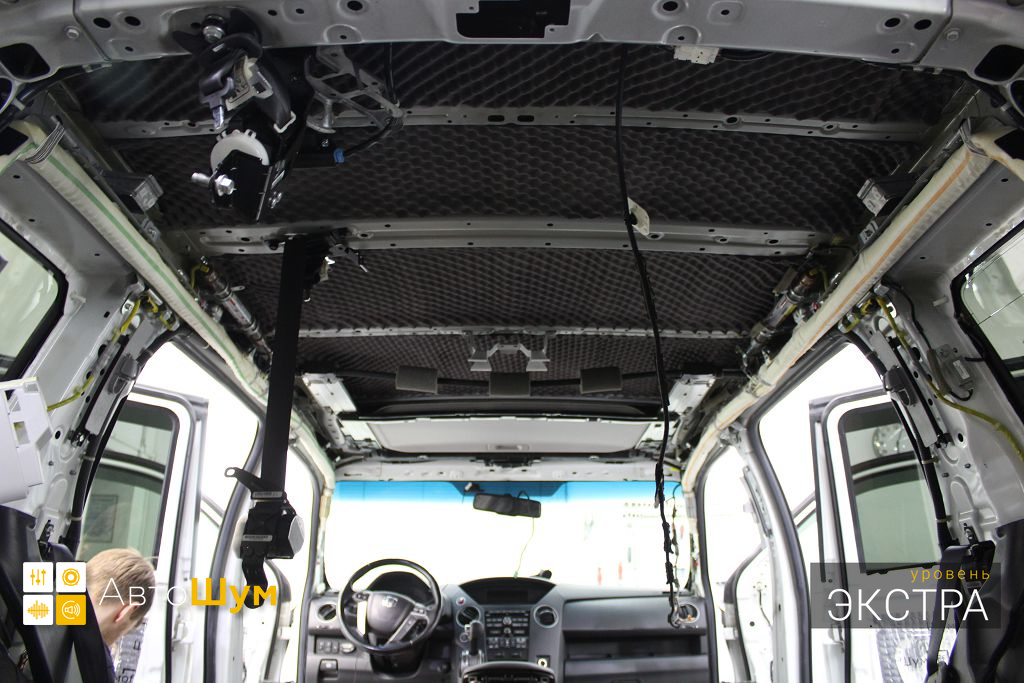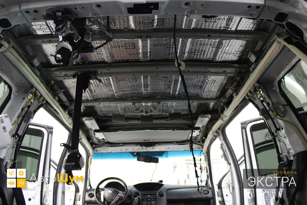 Штатная шумоизоляция крыши на Honda Pilot (Хонда Пилот) полностью отсутствует.