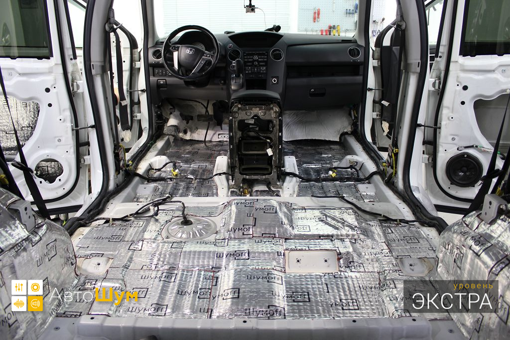 Honda Pilot – это большой и просторный автомобиль созданный для американского рынка, для путешествий с семьёй на длительные расстояния. Однако шумоизоляция автомобиля на достаточно низком уровне, что снижает комфорт и увеличивает утомляемость водителя. Исправить эти недочёты можно если сделать шумоизоляцию Хонда Пилот.