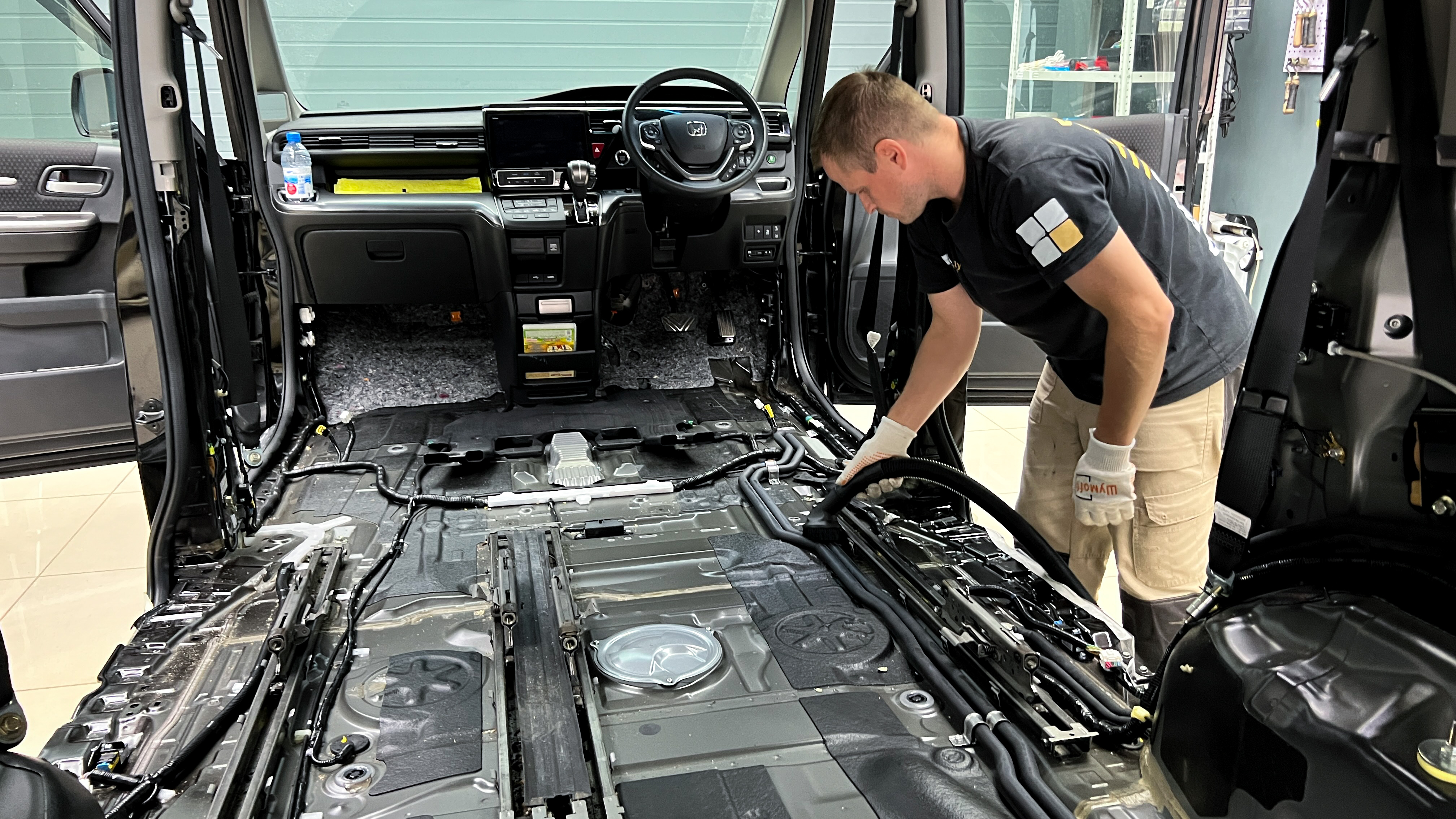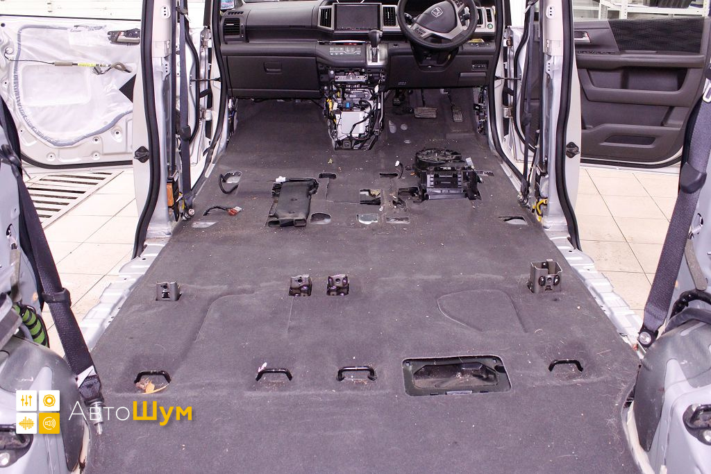 Honda Stepwgn - большой и просторный минивэн, большие двери, удобная посадка и три ряда сидений все это позволило снискать популярность данному автомобилю, однако шумоизоляция остается как обычно у японцев на низком уровне, шум от колес и дорожного покрытия, скрипы и бряки по салону, а так же с учетом размеров салона плохая теплоизоляция. Все это можно исправить, если делать дополнительную шумоизоляцию салона.