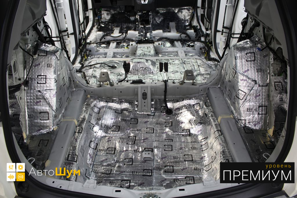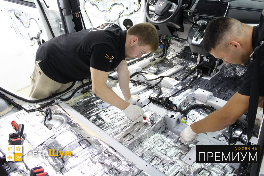 Перед началом шумоизоляции пола на Honda CR-V 5 (Хонда СР-В) необходимо проверить качество адгезии заводской виброизоляции к кузову. Она должна хорошо держаться, в противном, случае её необходимо демонтировать.
