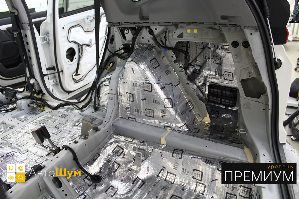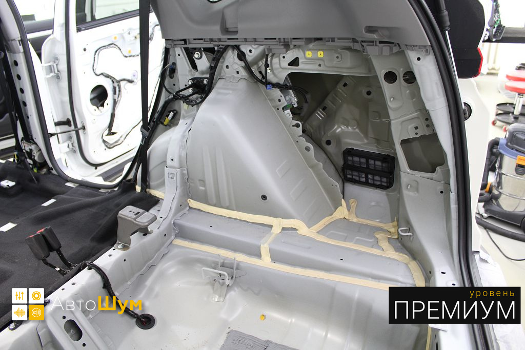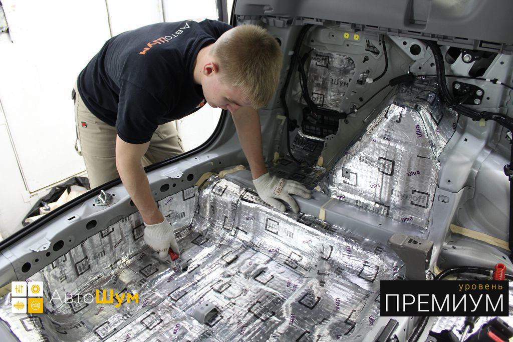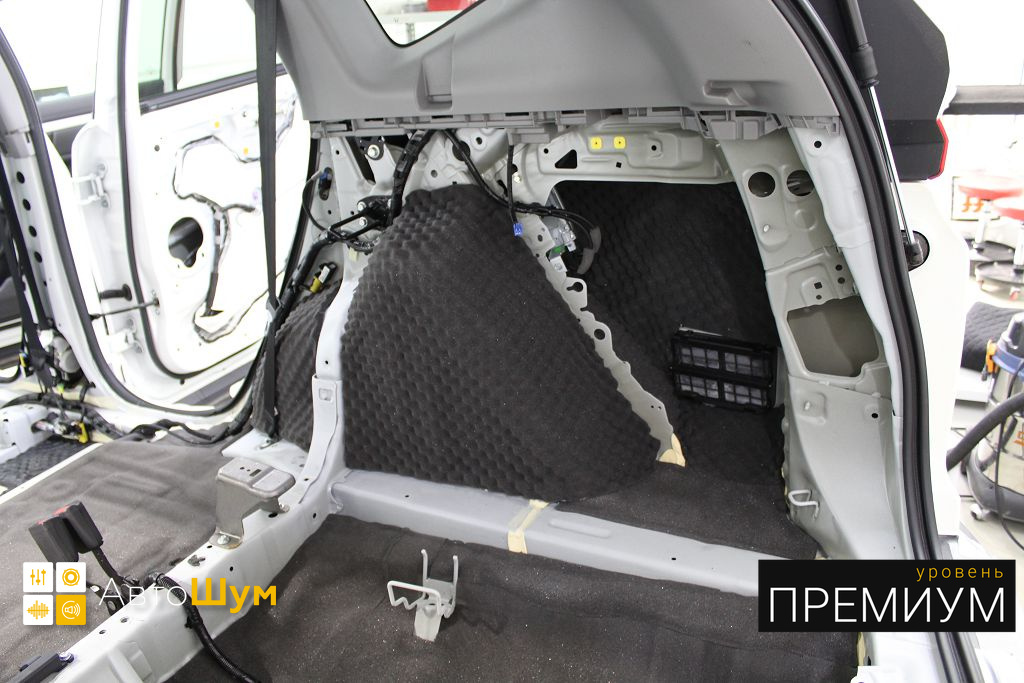 Под заднее сиденье монтируем более тонкий Герметон 7.На арки же наносится шумопоглотитель Absorber А15.
