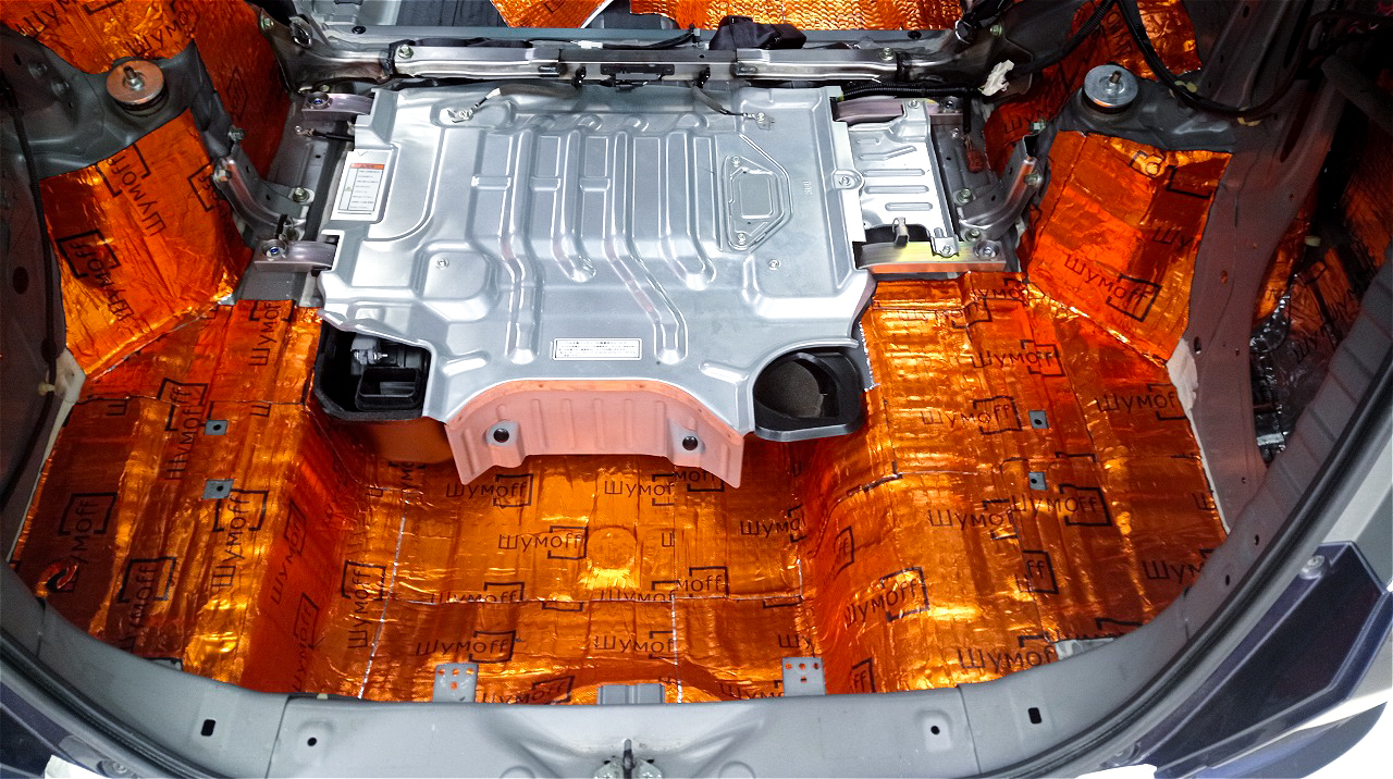 От моторной перегородки и до заднего сиденья вмести с ним клеится мощный многослойный шумо и звукоизолятор Шумофф Prizma 6.