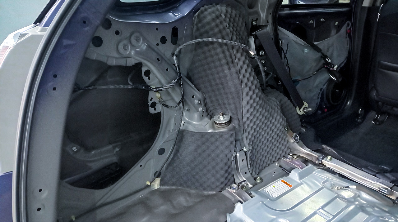 Данный слой отлично устраняет эффект барабана, ведь арки постоянно подвержены воздействиям различных внешних сил, таких как: вода, песок, камни и т.д . Все это, отлетая, создает ощутимые шумы, ведь каждый удар камня создает достаточно шумный резонанс, передающийся в салон. Завершаем шумоизоляцию арок обратной сборкой, устанавливаем подкрылки и колеса на место