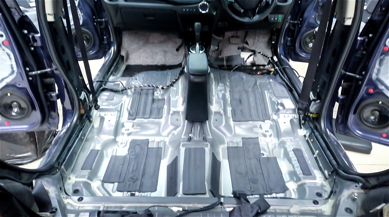 Перед началом шумоизоляции пола на Honda Fit Shuttle (Хонда Фит Штал) необходимо проверить качество адгезии заводской виброизоляции к кузову. Она должна хорошо держаться, в противном, случае её необходимо демонтировать.