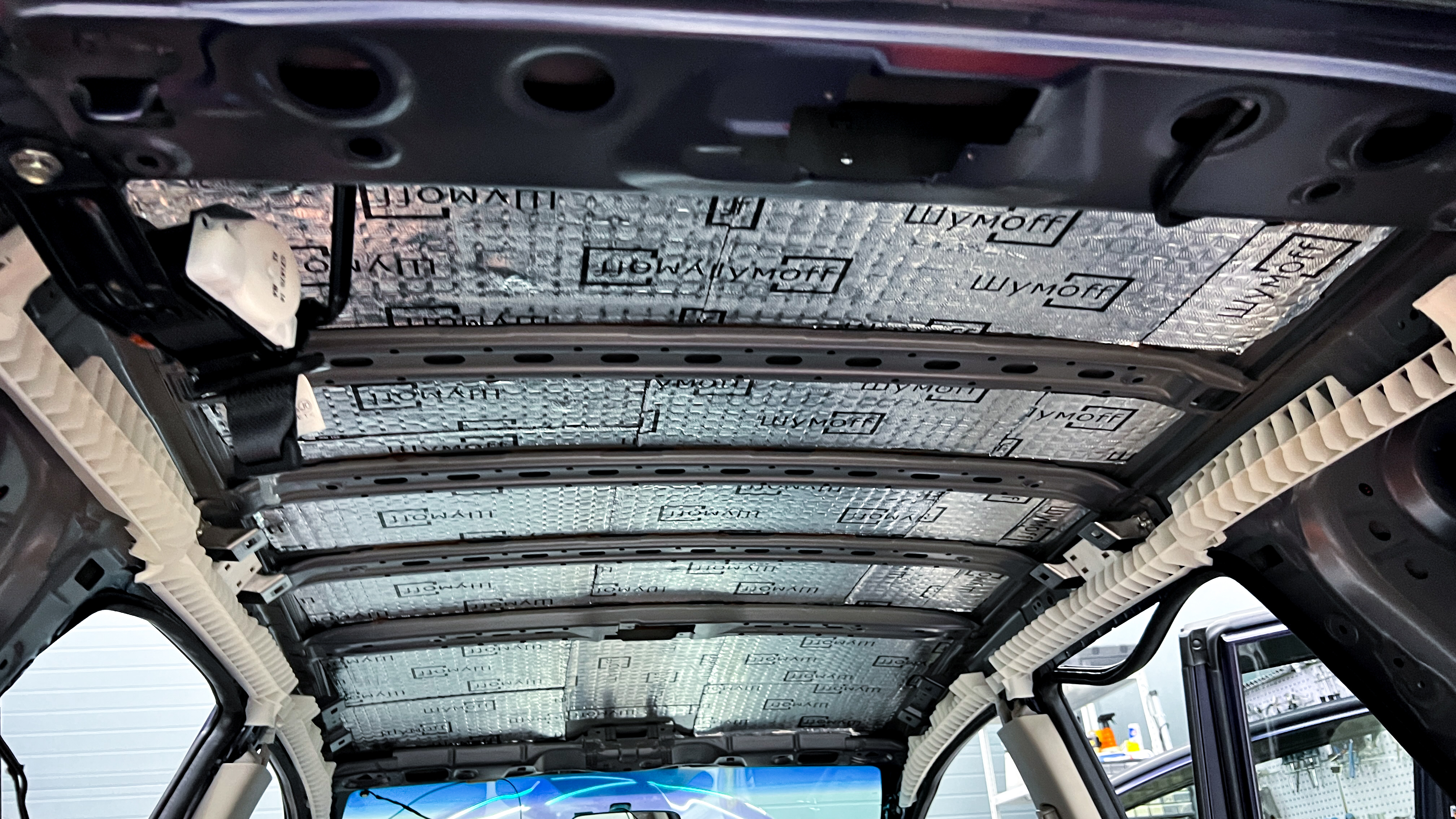 Вторым слоем поверх виброизоляции клеим на крышу современный и очень эффективный шумопоглотитель Шумофф Absorber А15.