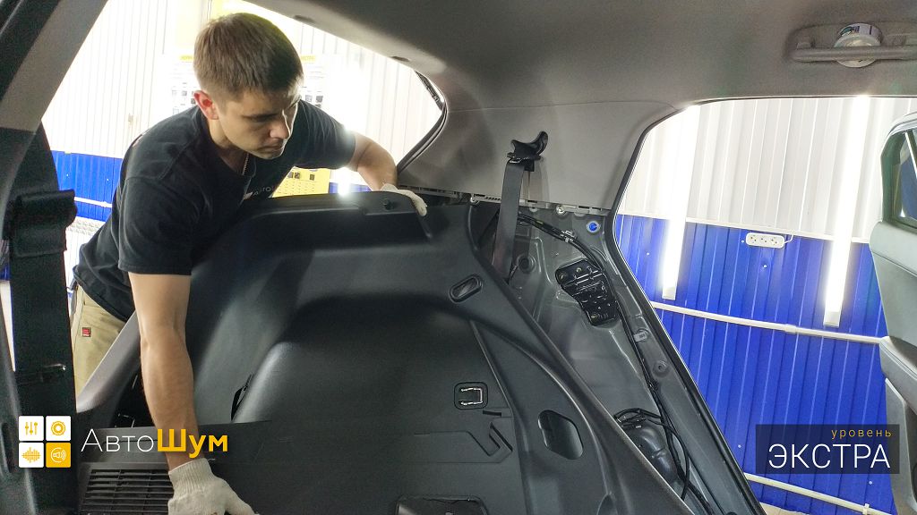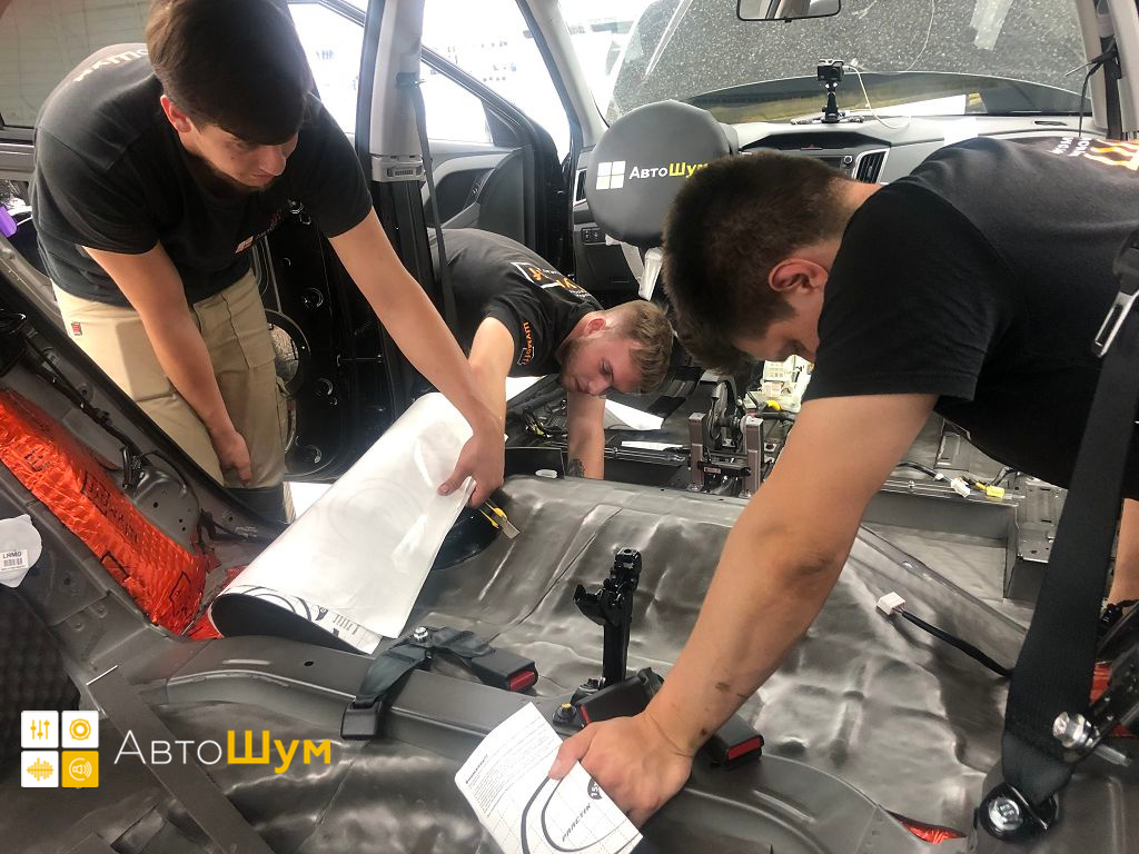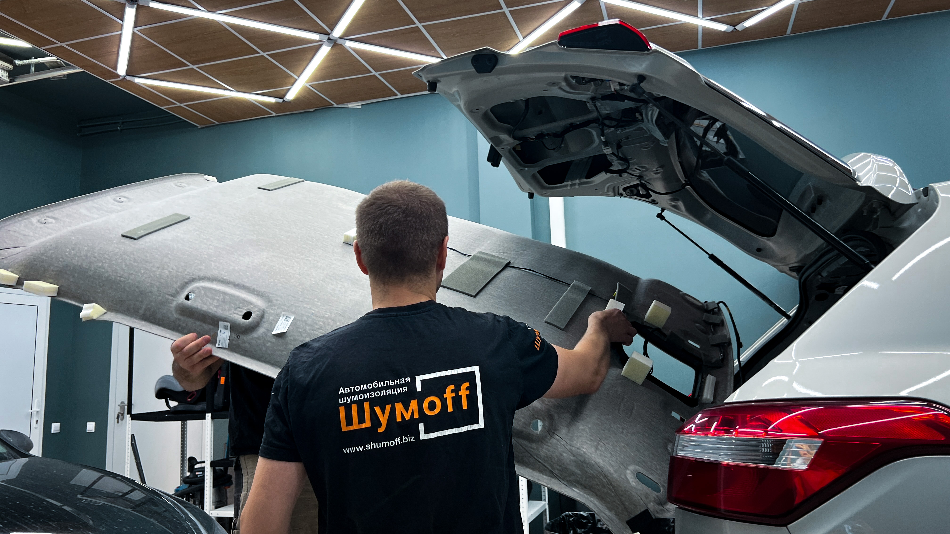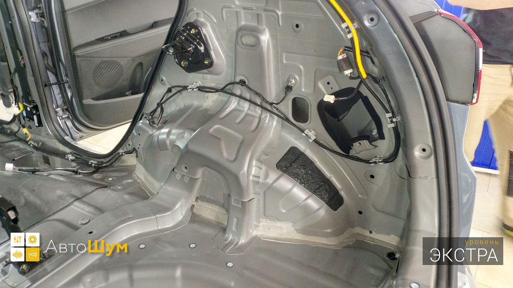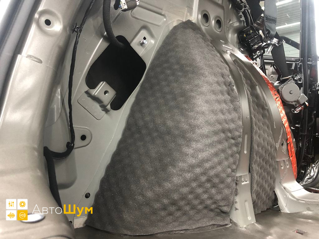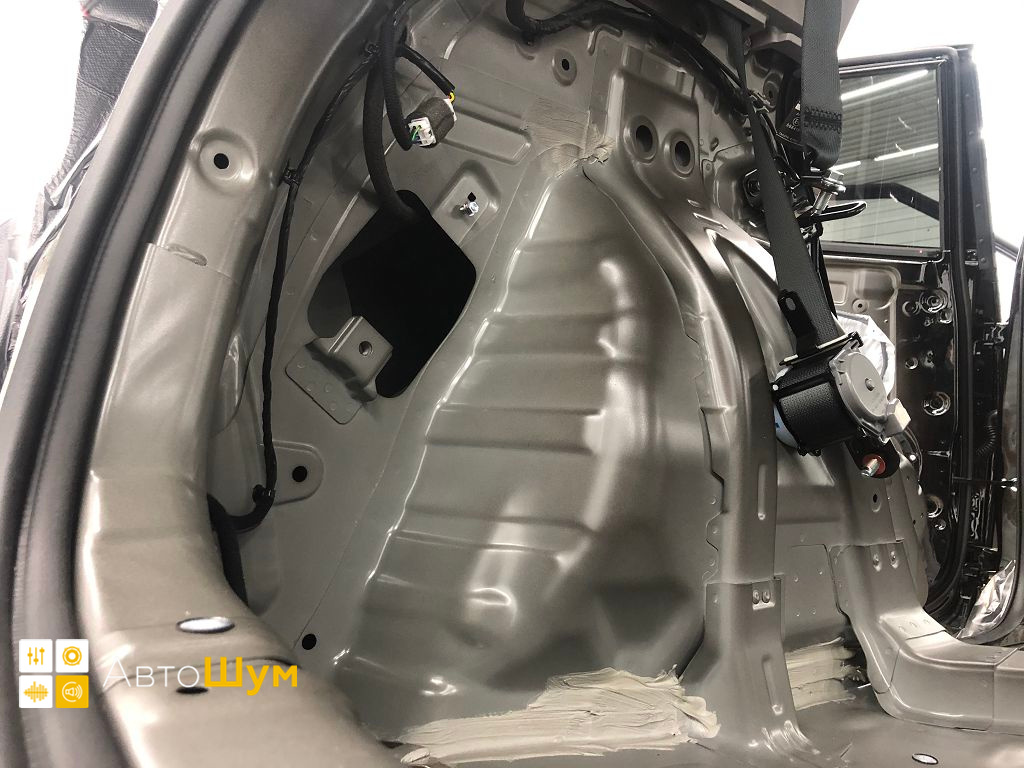 Дно багажника и крылья оклеиваются шумо и теплоизолятором Шумофф П4 4. Арки оклеиваются шумопоглотителем Flex A15.