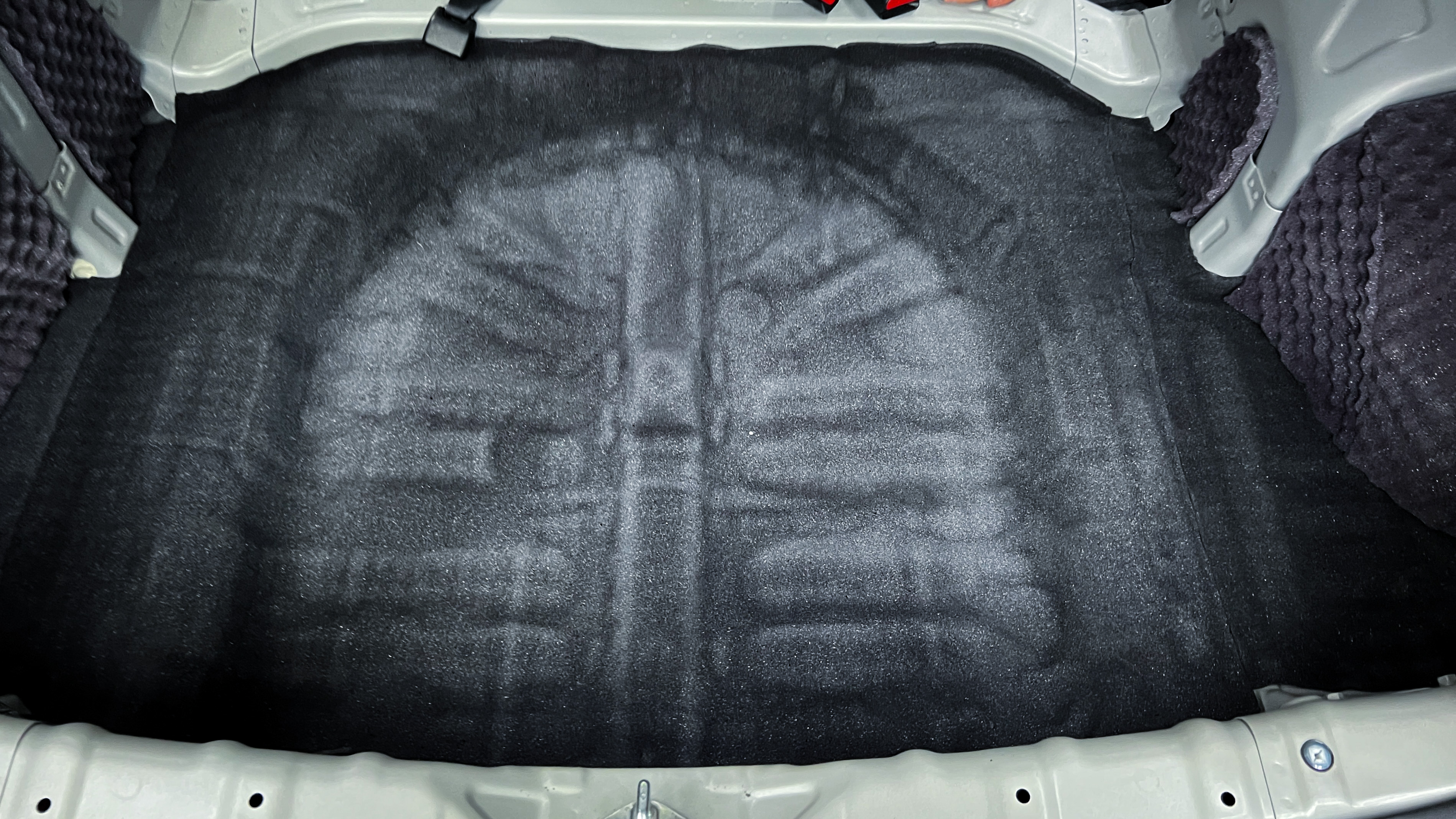 Оклеиваем максимальную площадь багажника за исключением усилителей и ребер жесткости. Данная компоновка материалов позволит идеально достичь нужной эффективности при минимальном увеличении веса, что вместе с виброизоляцией пола также поможет нам снизить вибрацию от дороги, увеличить целостность и сбитость авто.