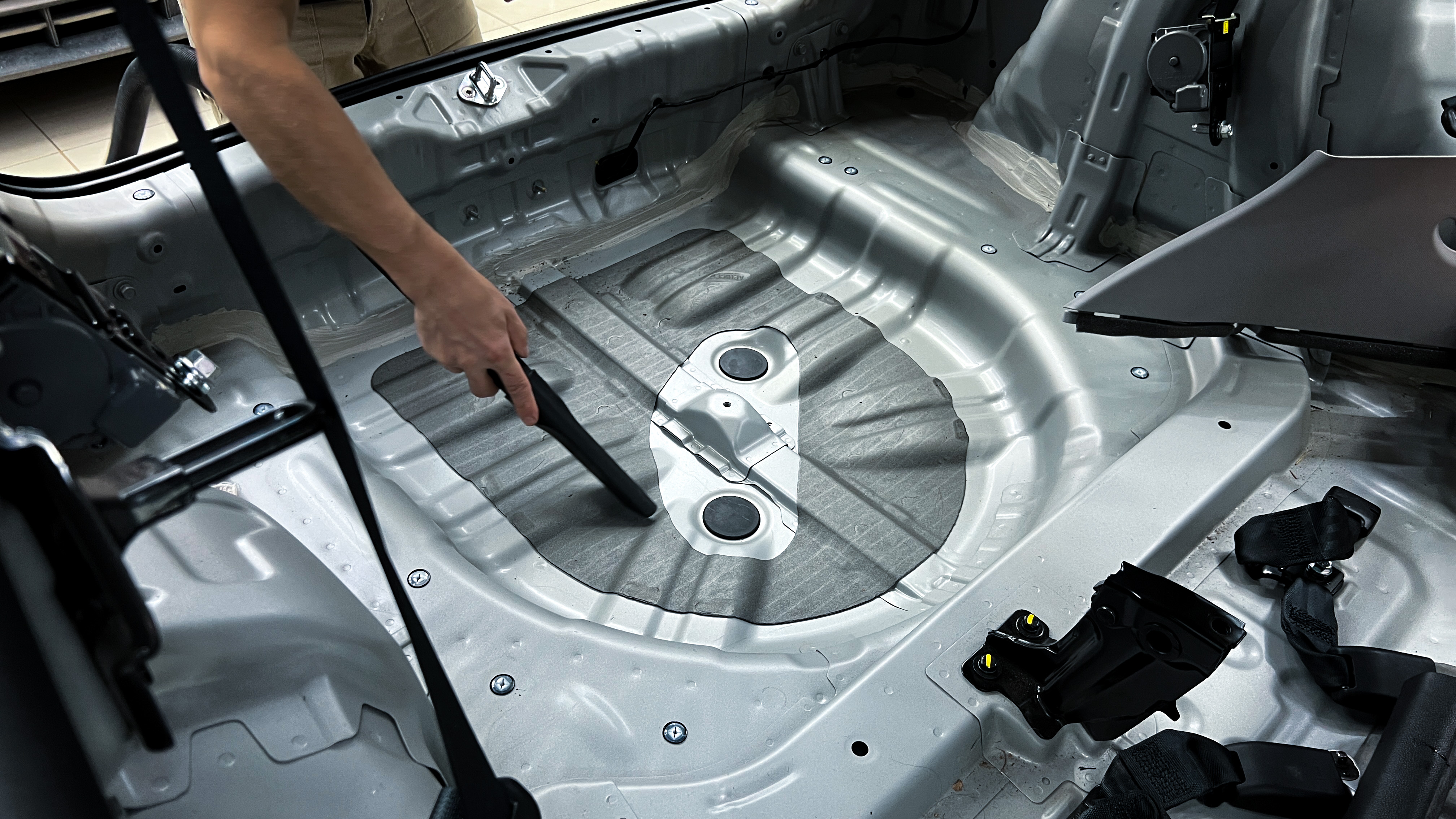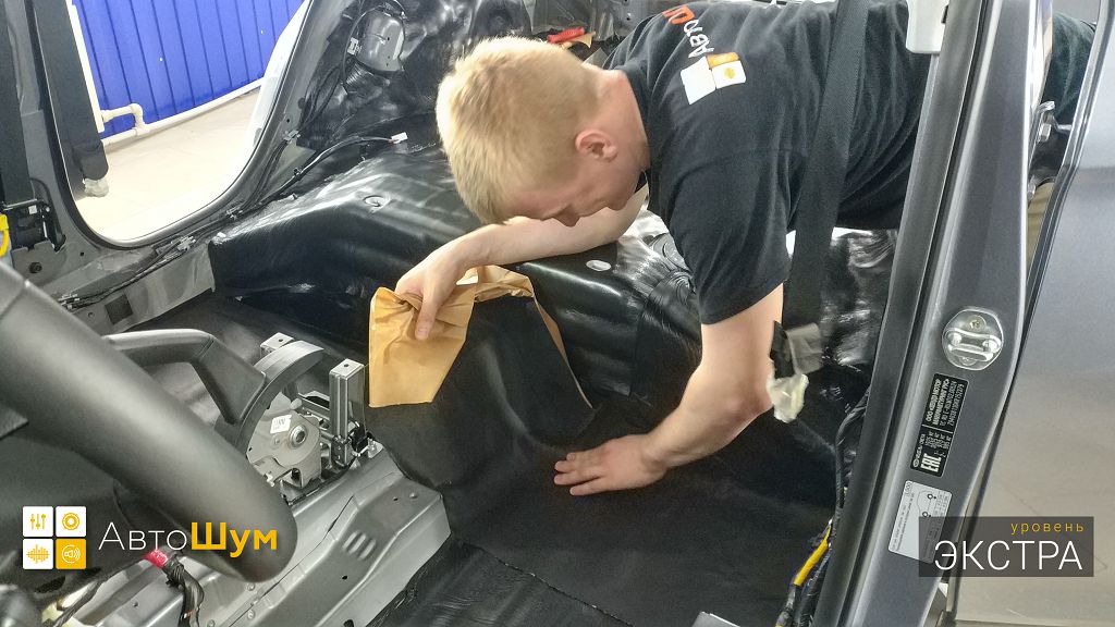 Этот слой позволит нам снизить шум от колес и дорожного покрытия, а также значительно увеличить теплоизоляцию салона.
