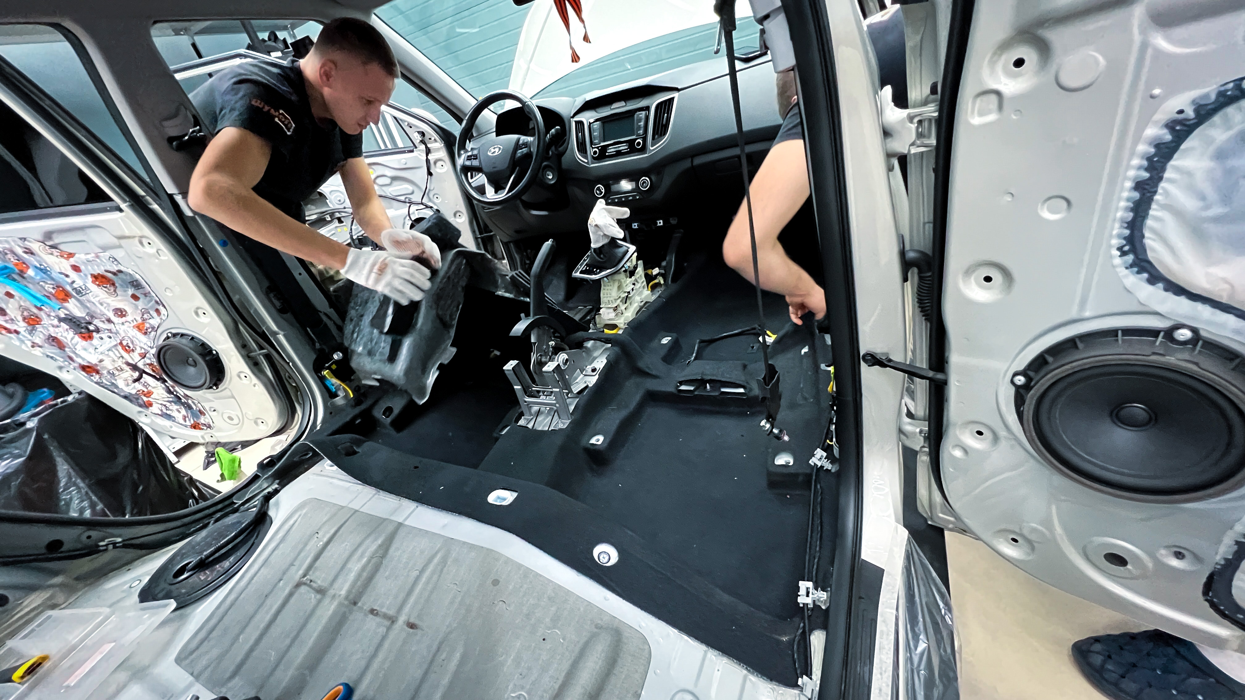 Приступаем к шумоизоляции салона Хёндай Крета.