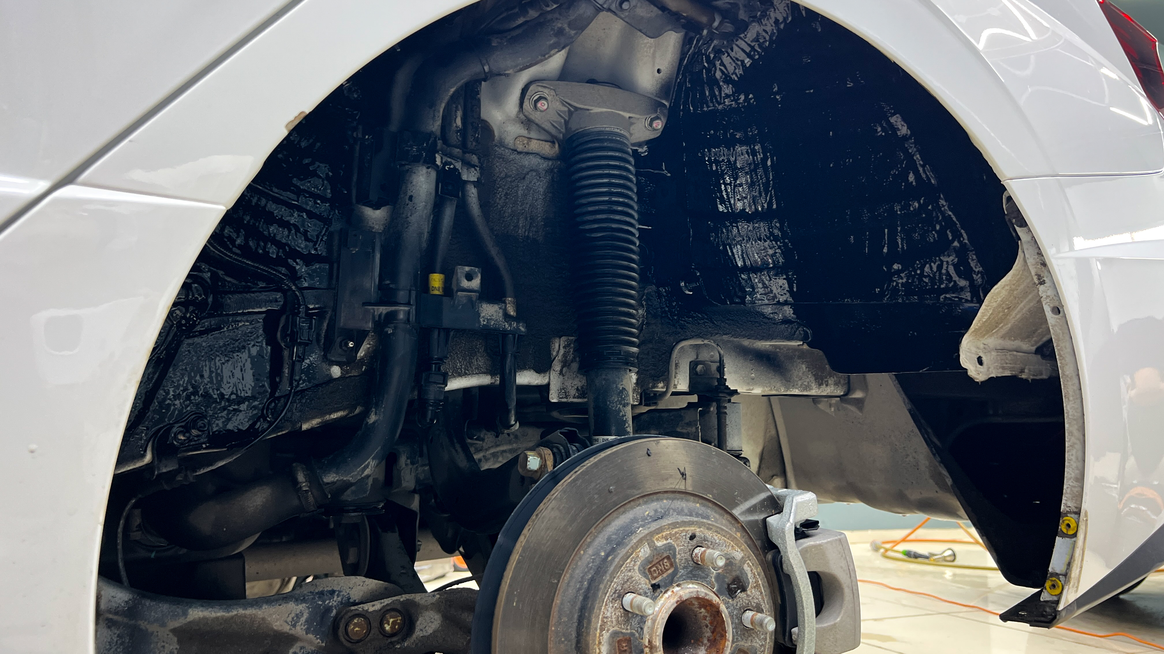 Приступаем к шумоизоляции арок автомобиля. Снимаем колеса и подкрылки