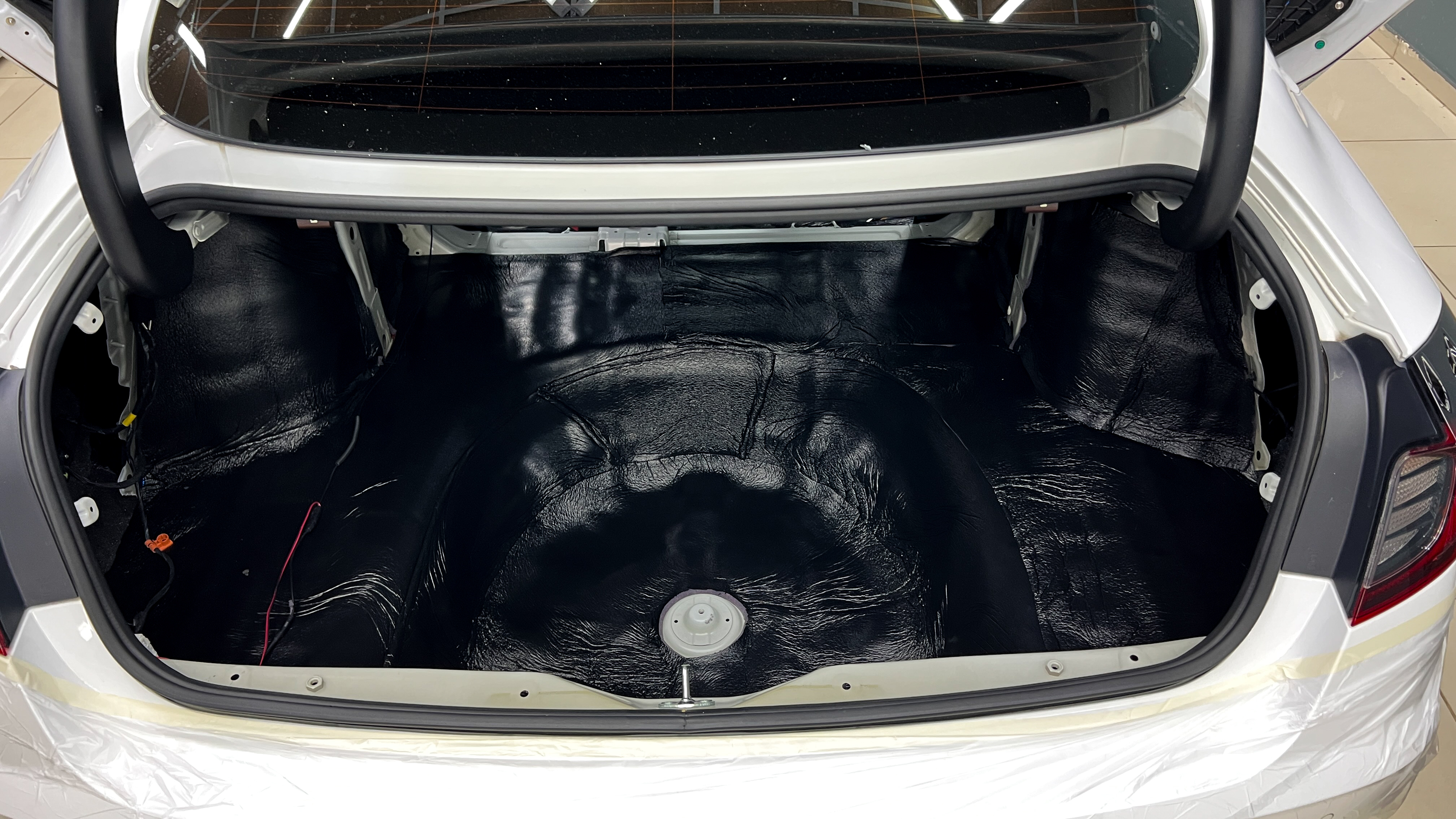 Вторым слоем на дно и крылья багажника монтируем Шумофф Герметон 7.