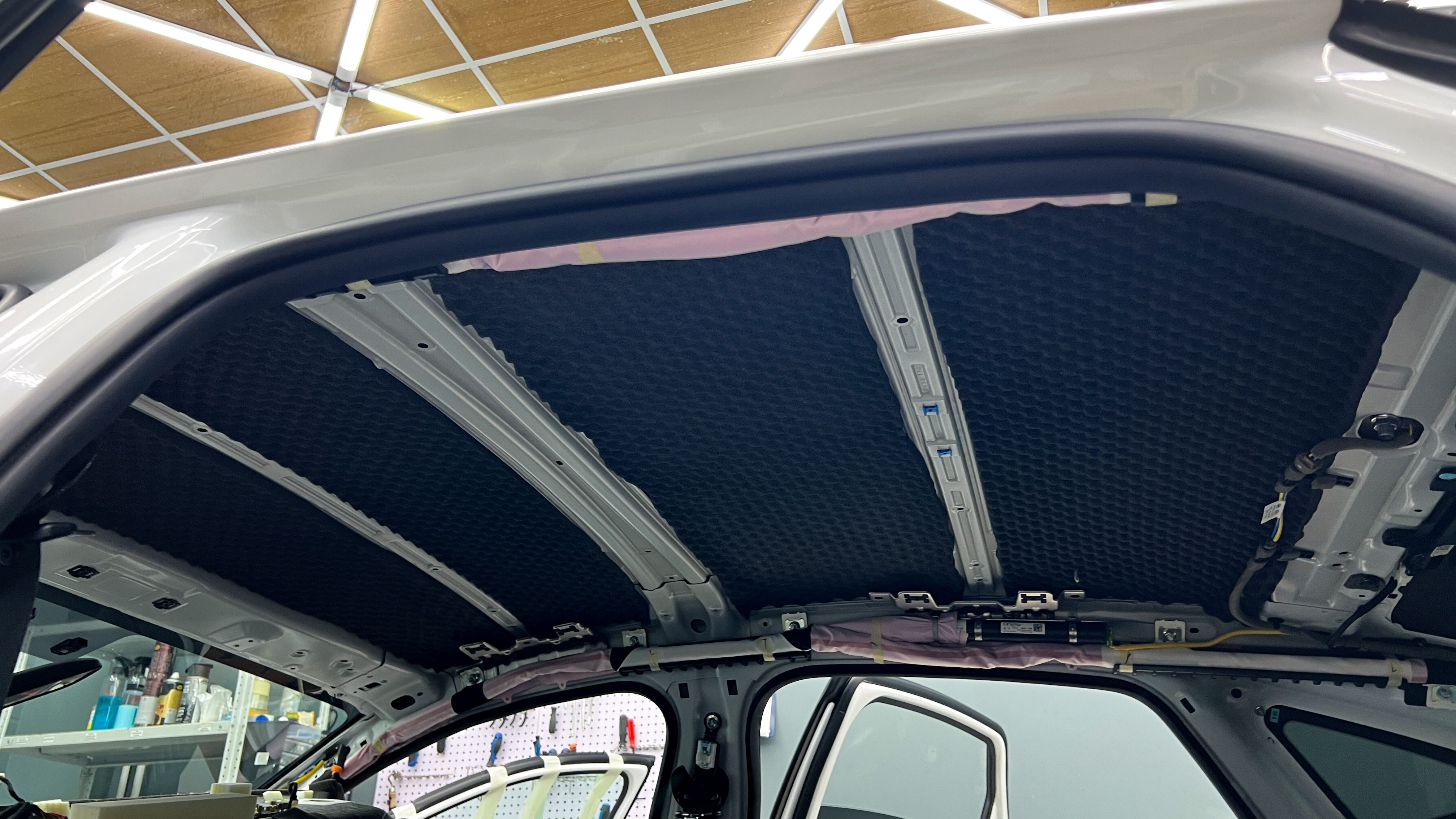 Для виброизоляции крыши багажника используем материал Шумофф L2, чтобы свести увеличение веса к минимуму. После чего переходим к обшивке.