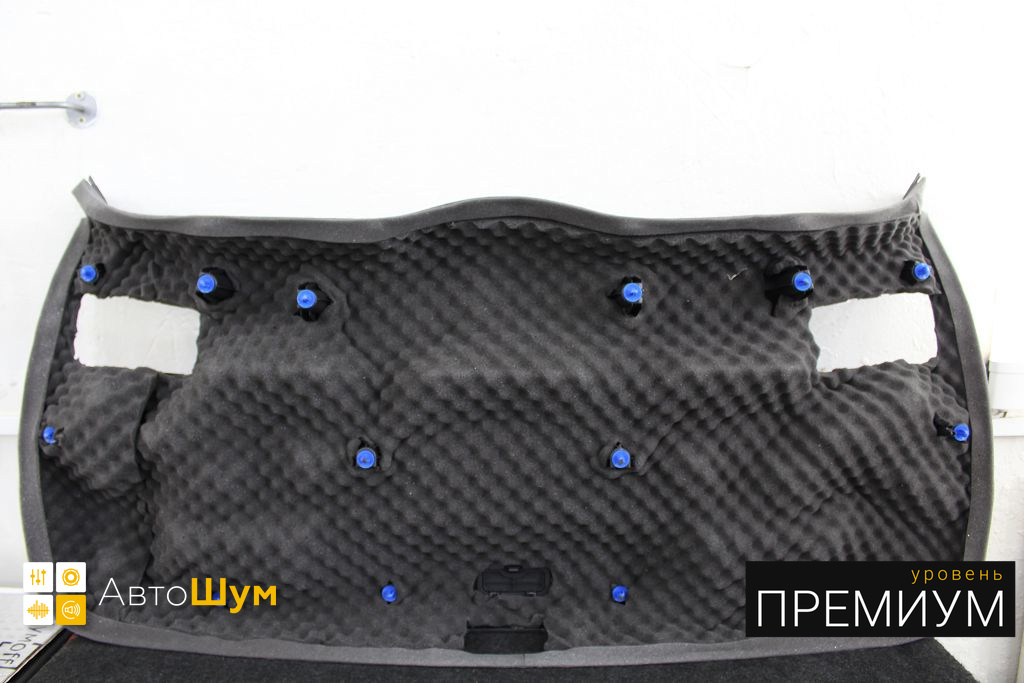 Для виброизоляции крыши багажника используем материал Шумофф L2, чтобы свести увеличение веса к минимуму. После чего переходим к обшивке.