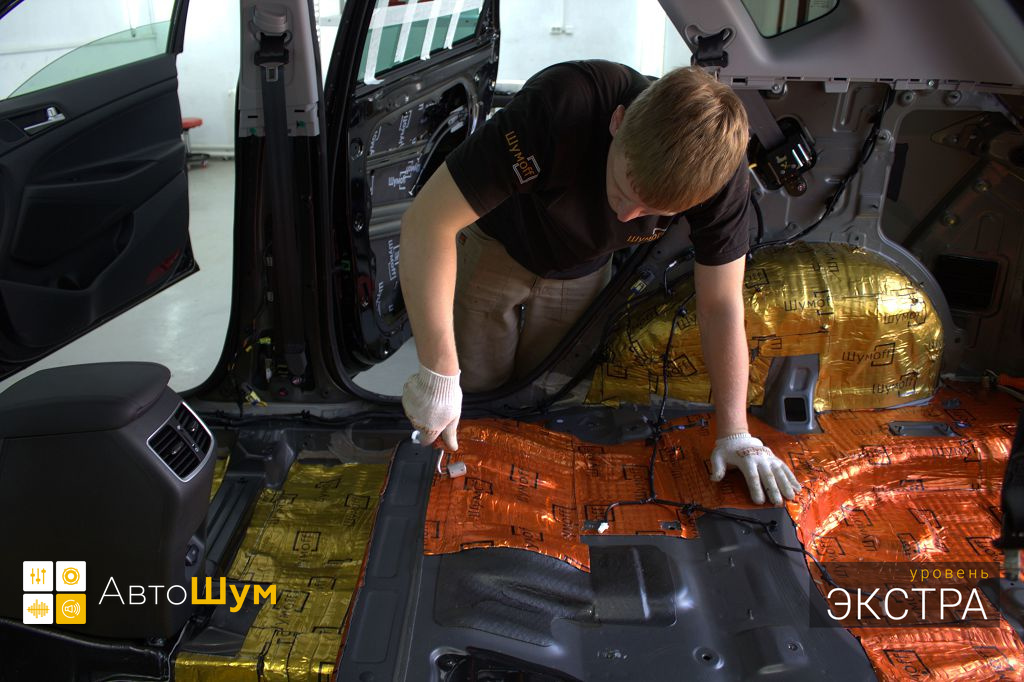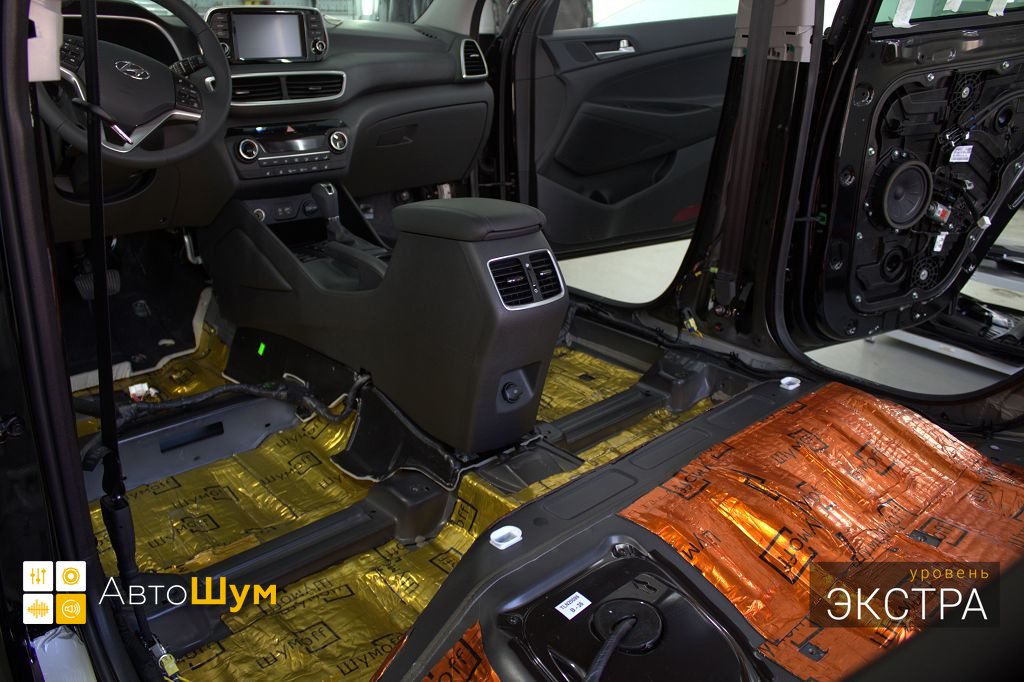 Новые автомобили Hyundai оснащены очень слабой шумоизоляцией салона. Шум от колес, при езде по плохому покрытию, при езде по трассе постоянно досаждает владельцев. Исправить эти недочёты можно, сделав дополнительную шумоизоляцию салона Хендай Туссан