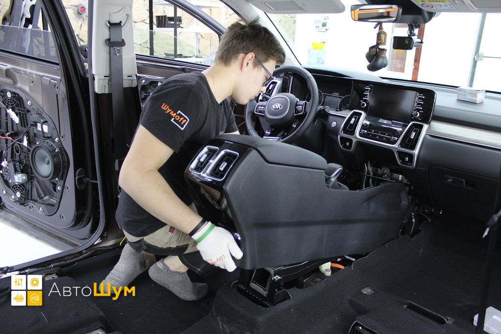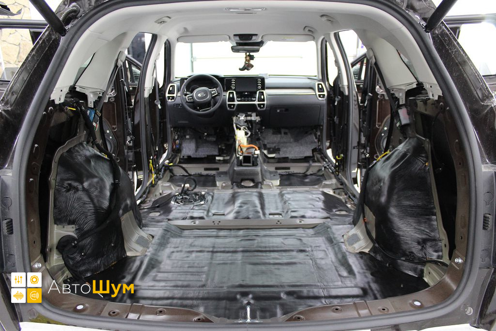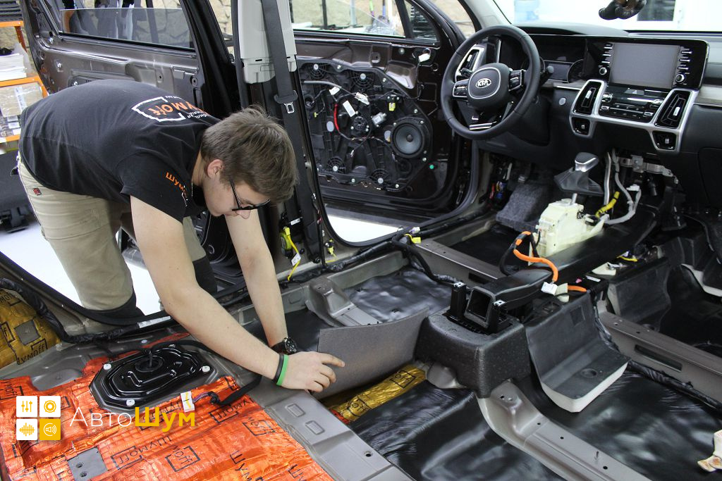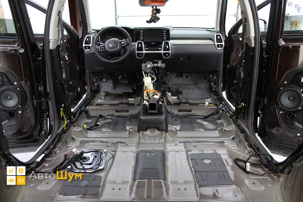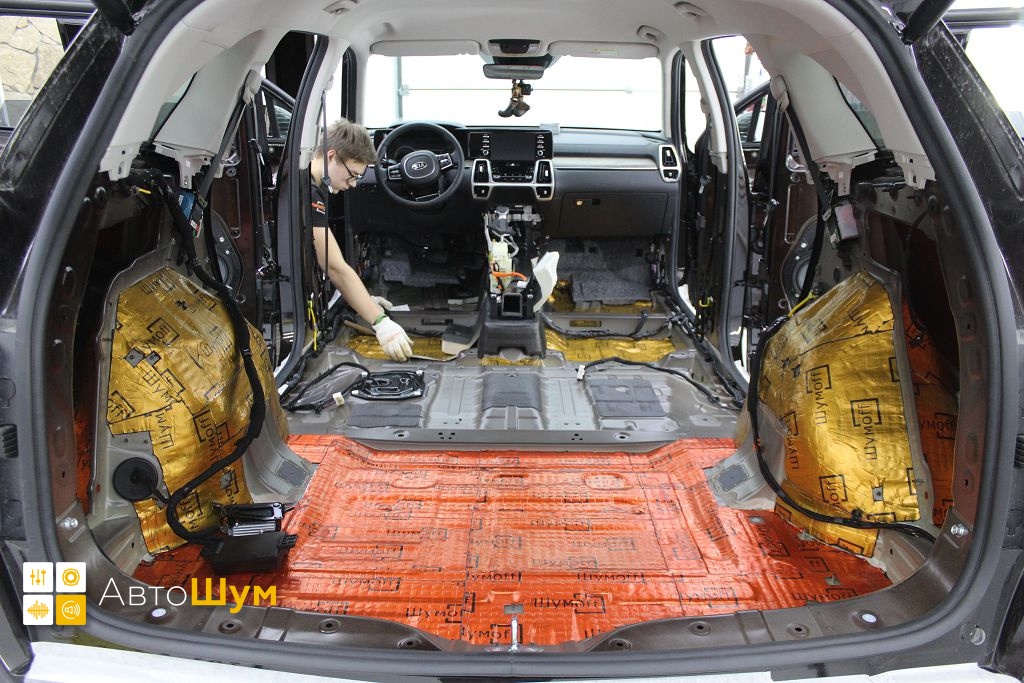 Перед началом шумоизоляции пола на Kia Sorento (Киа Соренто) необходимо проверить качество адгезии заводской виброизоляции к кузову. Она должна хорошо держаться, в противном, случае её необходимо демонтировать.
