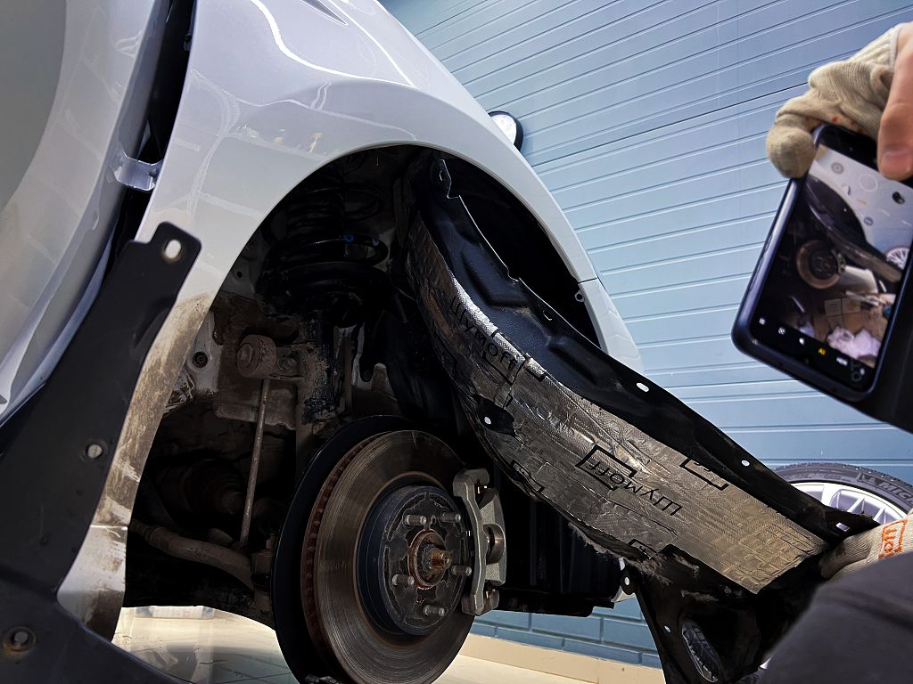 Приступаем к шумоизоляции арок автомобиля. Снимаем колеса и подкрылки