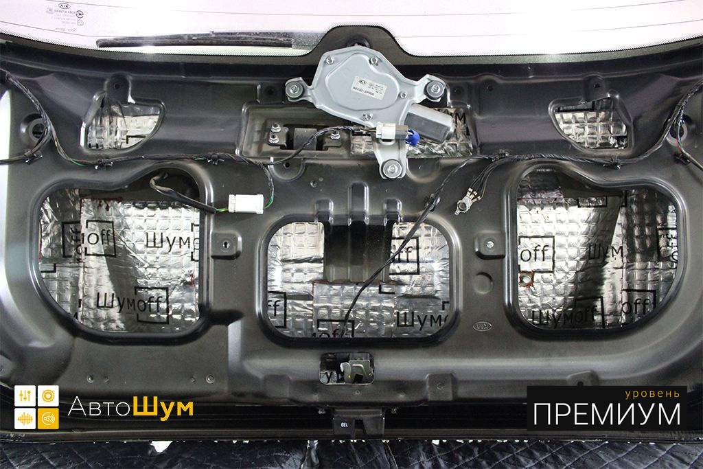 Крышку багажника оклеиваем виброизоляцией Шумофф Joker, это позволит свести увеличение ее веса к минимуму, дабы не возникло проблем с открыванием багажника.