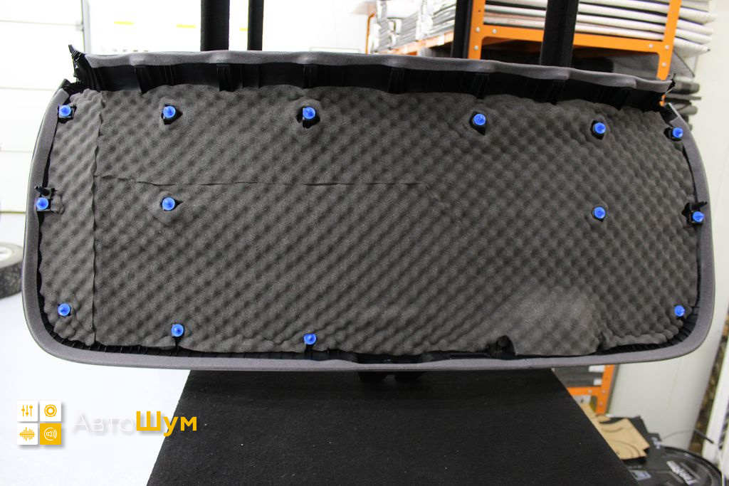 Для виброизоляции крыши багажника используем материал Шумофф L2, чтобы свести увеличение веса к минимуму. После чего переходим к обшивке.
