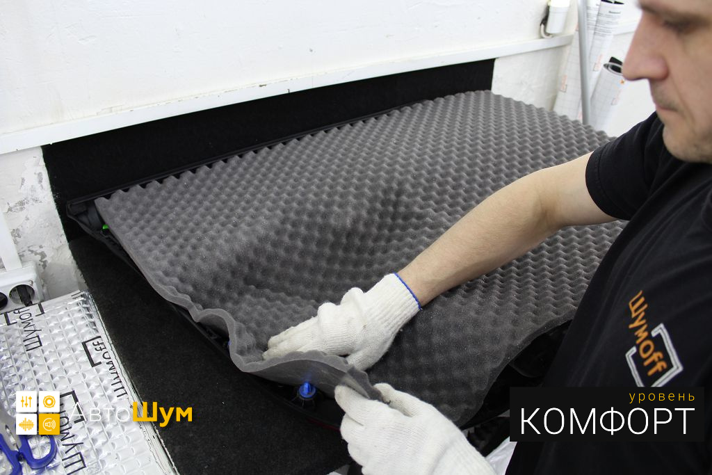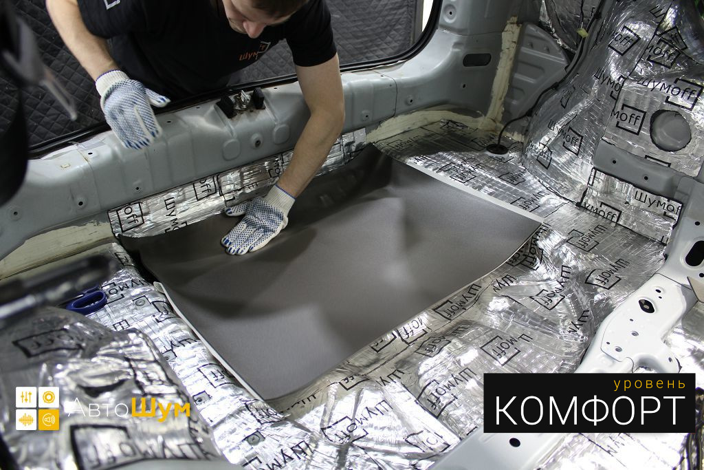 Второй слой позволит нам снизить шум от колес и дорожного покрытия, а также значительно увеличить теплоизоляцию салона.
