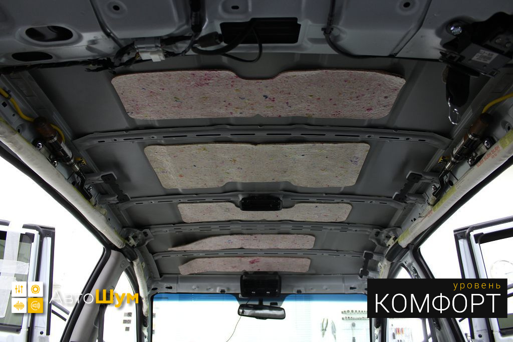Такая компоновка материалов позволит при максимальной эффективности собрать салон в первозданный вид. Также это позволит снизить шум от колес, дорожного покрытия и значительно увеличить теплоизоляцию автомобиля.