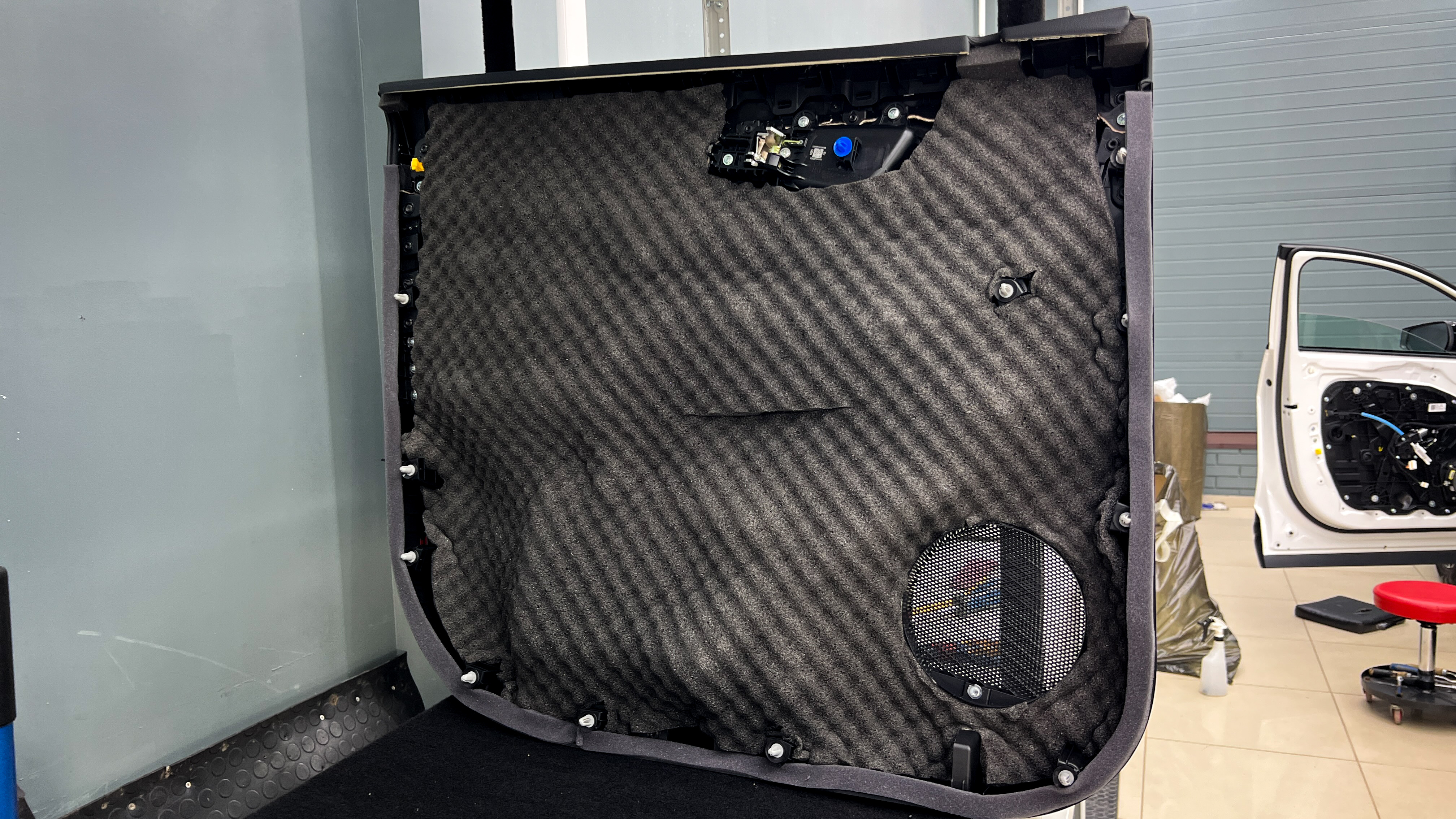 Этот слой помимо еще одного барьера для внешнего шума позволит раскрыть потенциал акустической системы, установленной в дверях.