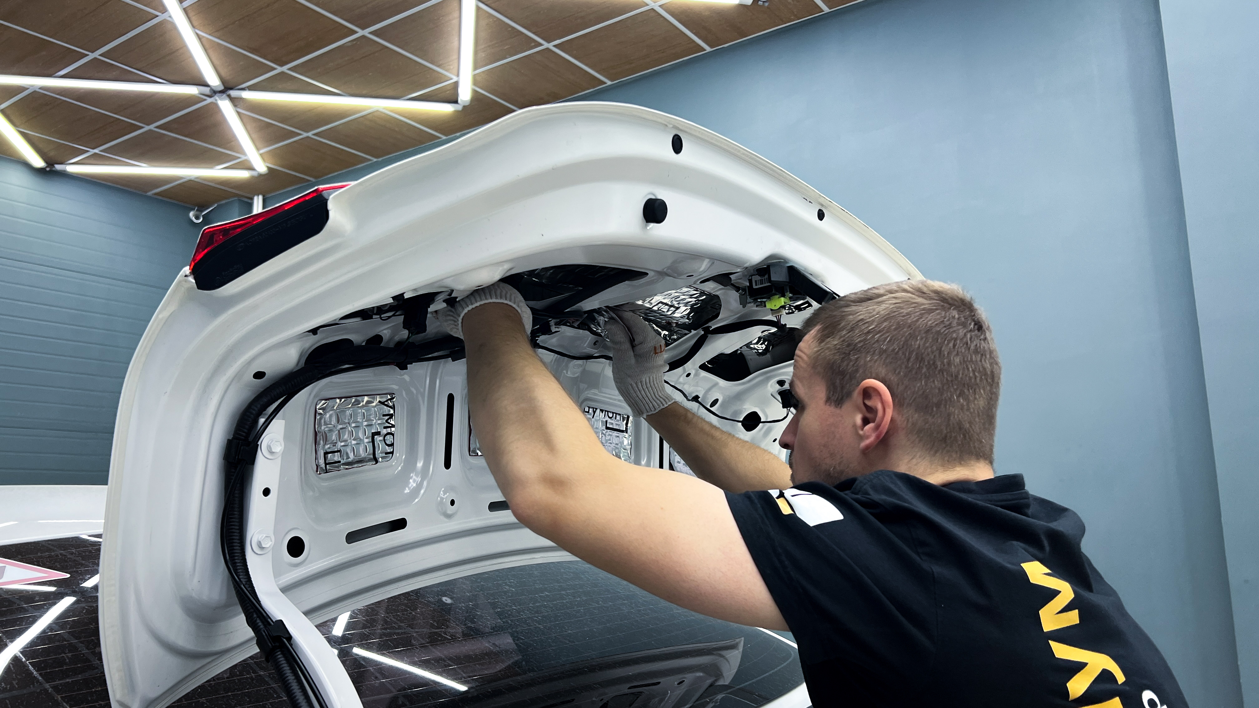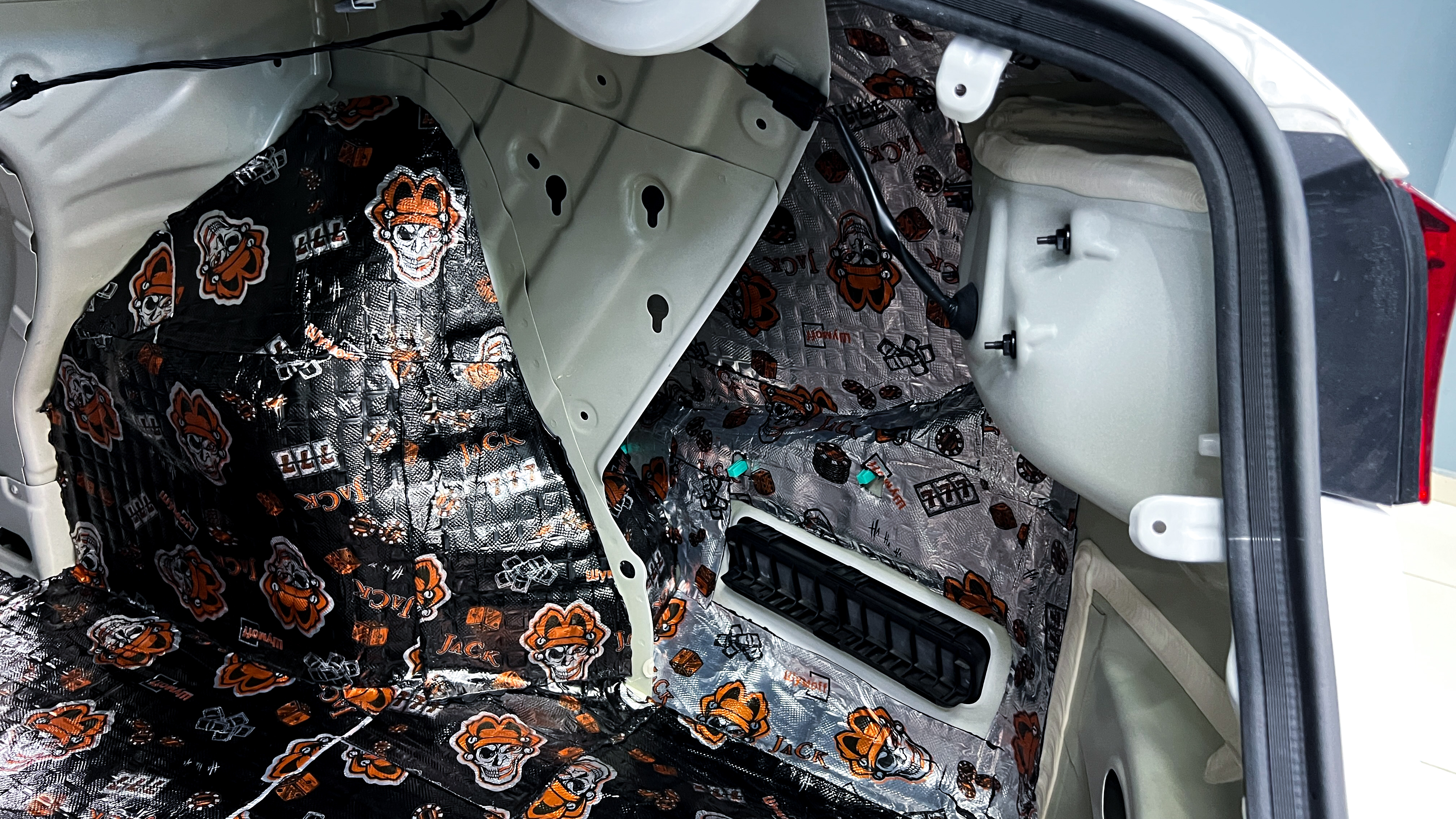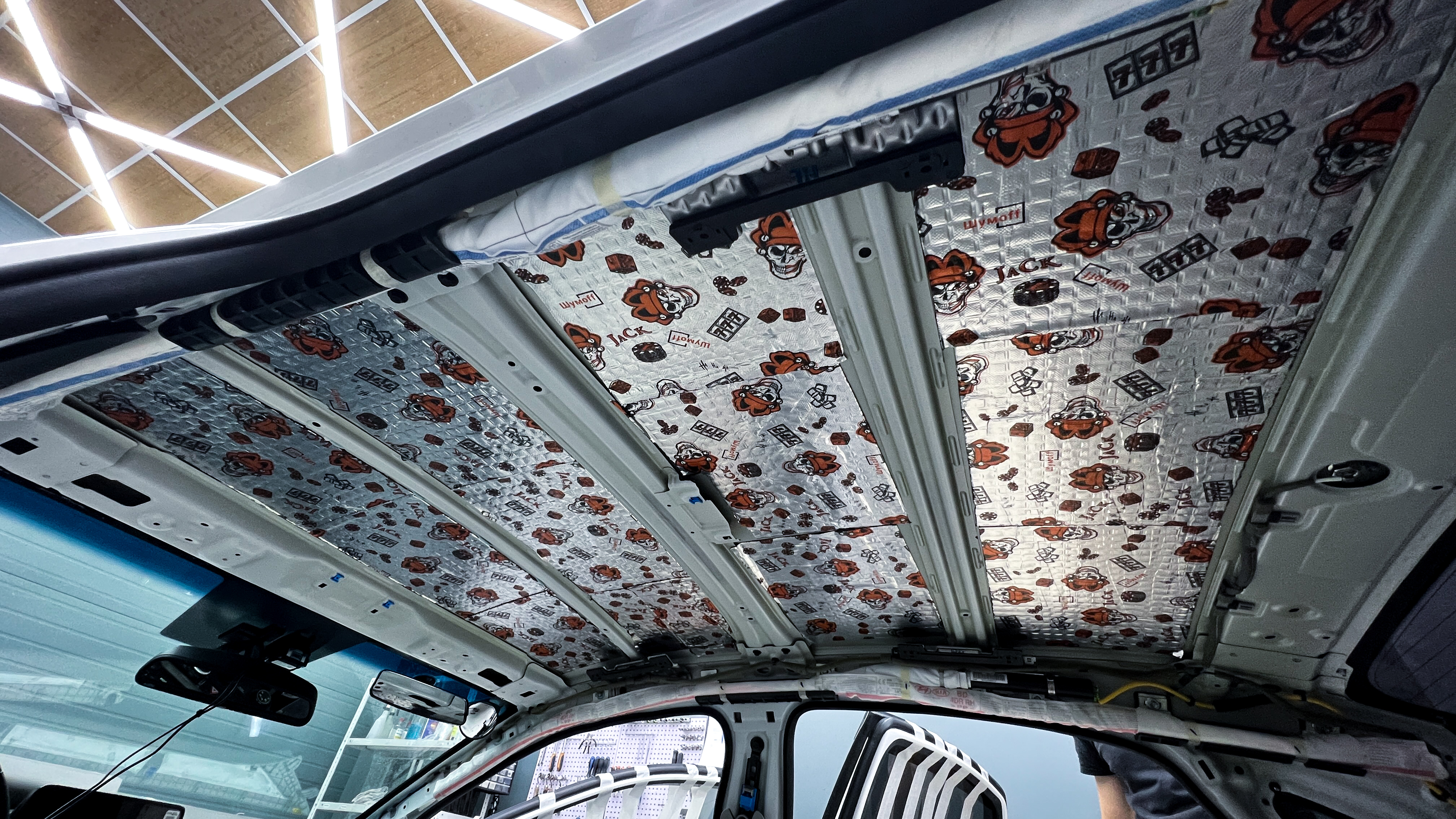 Для виброизоляции крыши багажника используем материал Шумофф L2, чтобы свести увеличение веса к минимуму. После чего переходим к обшивке.