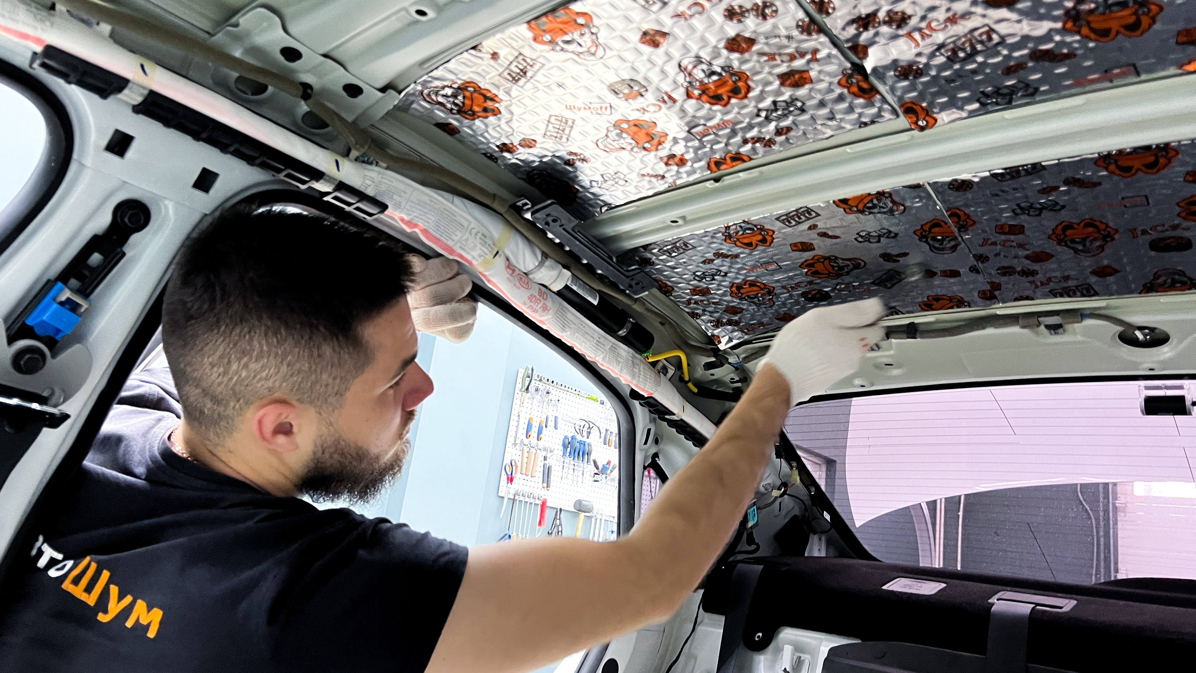 Внутренняя поверхность обивки оклеивается шумопоглотителем Шумофф Absorber А15.