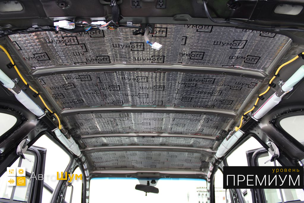Вторым слоем поверх виброизоляции клеим на крышу современный и очень эффективный шумопоглотитель Шумофф Absorber А15.