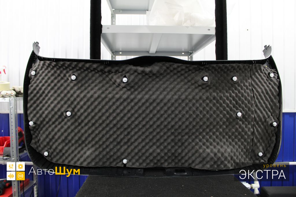 Для виброизоляции крыши багажника используем материал Шумофф L2, чтобы свести увеличение веса к минимуму. После чего переходим к обшивке.