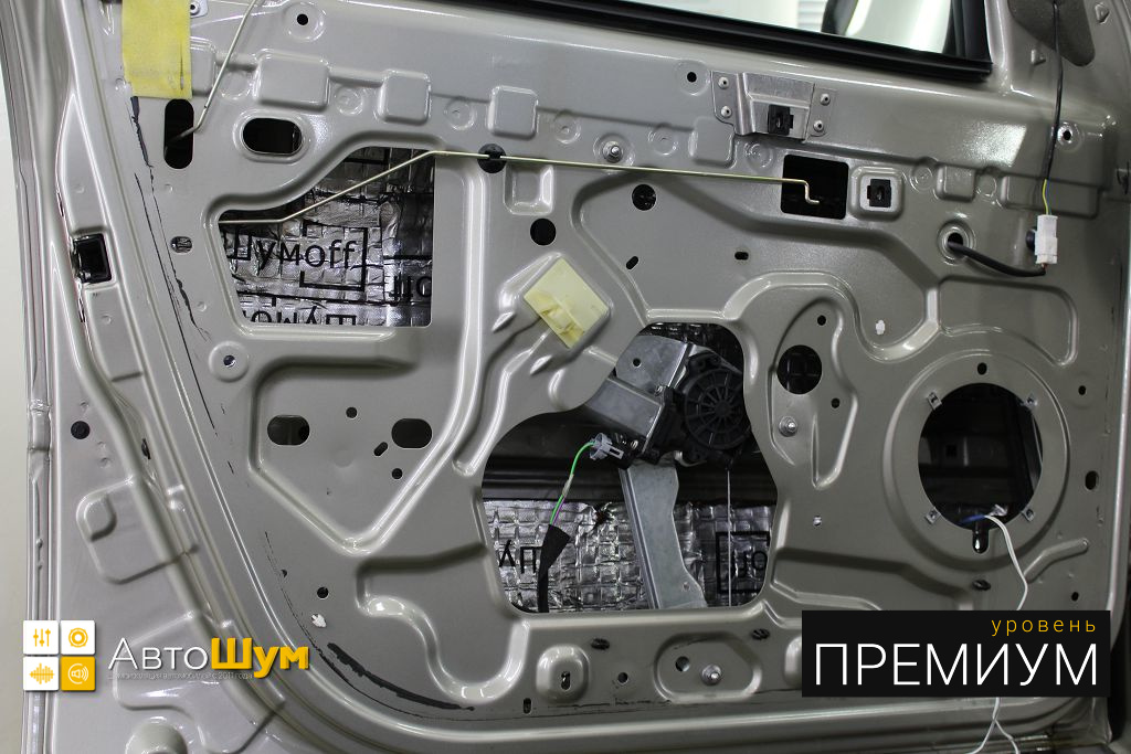 Этот слой помимо еще одного барьера для внешнего шума позволит раскрыть потенциал акустической системы, установленной в дверях.