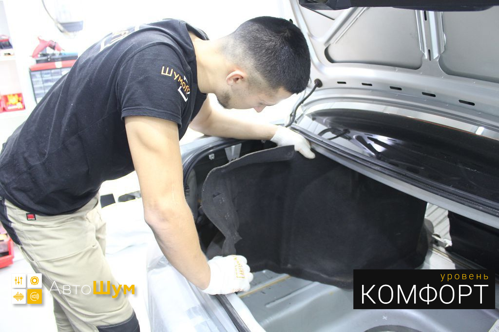 В багажнике так же необходимо проверить качество заводской виброизоляции и далее подготовить поверхность к монтажу, обезжирив её.