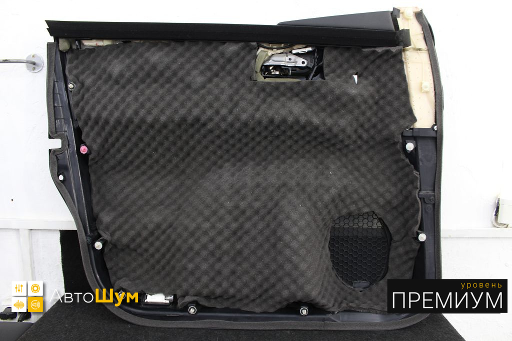 Шумоизоляция дверей Лексус ЛХ 570 Этот слой поможет нам улучшить звучание акустики, а также сделать закрывание дверей более приятным.