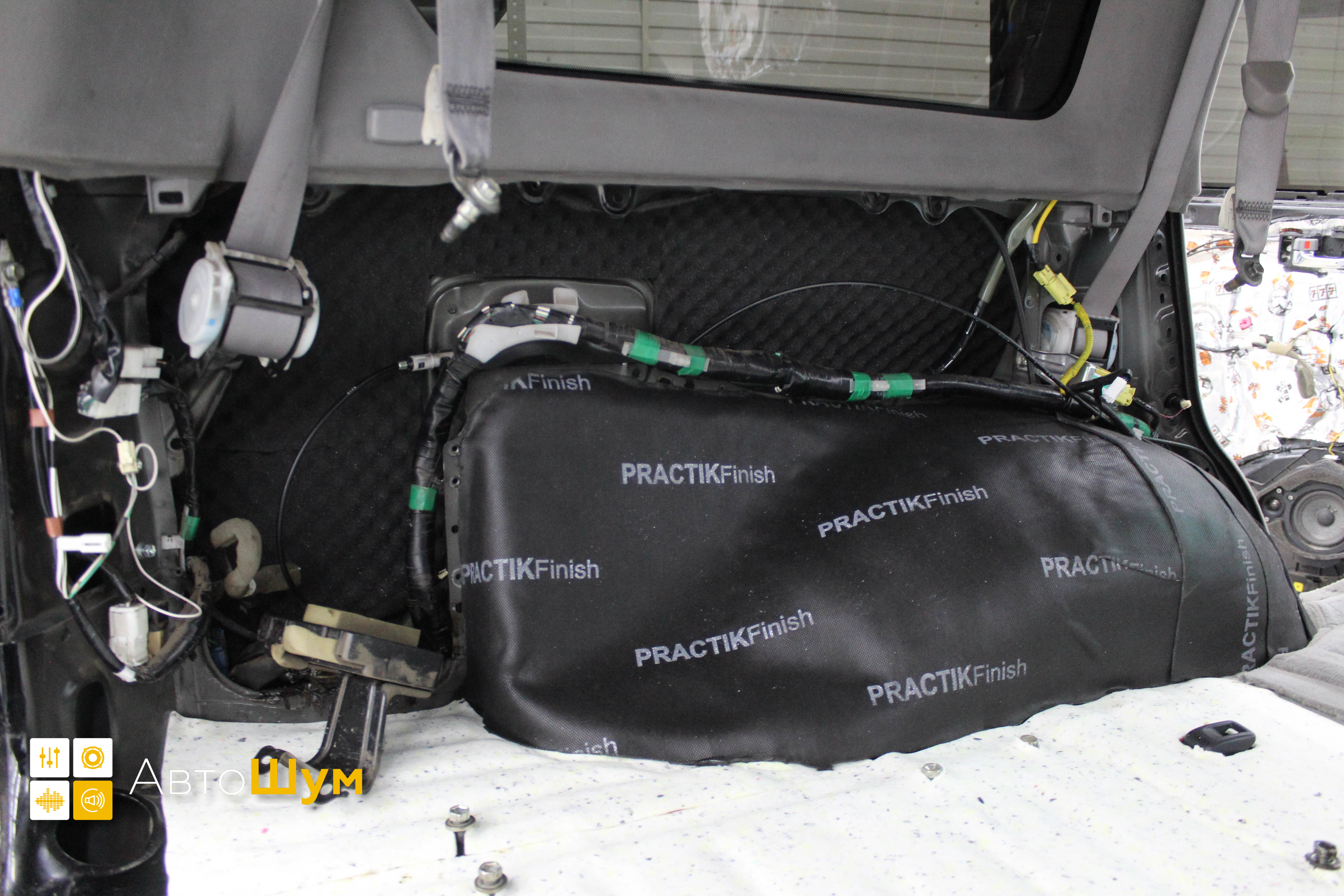 Дно багажника и крылья оклеиваются шумо и теплоизолятором Шумофф П4 4. Арки оклеиваются шумопоглотителем Flex A15.
