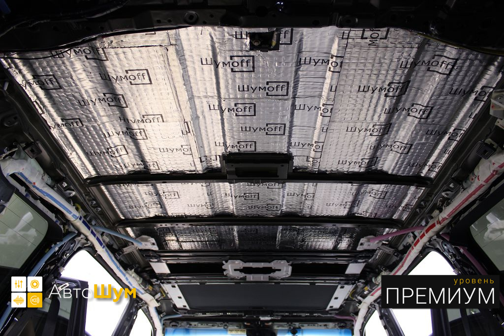 Вторым слоем поверх виброизоляции клеим на крышу современный и очень эффективный шумопоглотитель Шумофф Absorber А15.